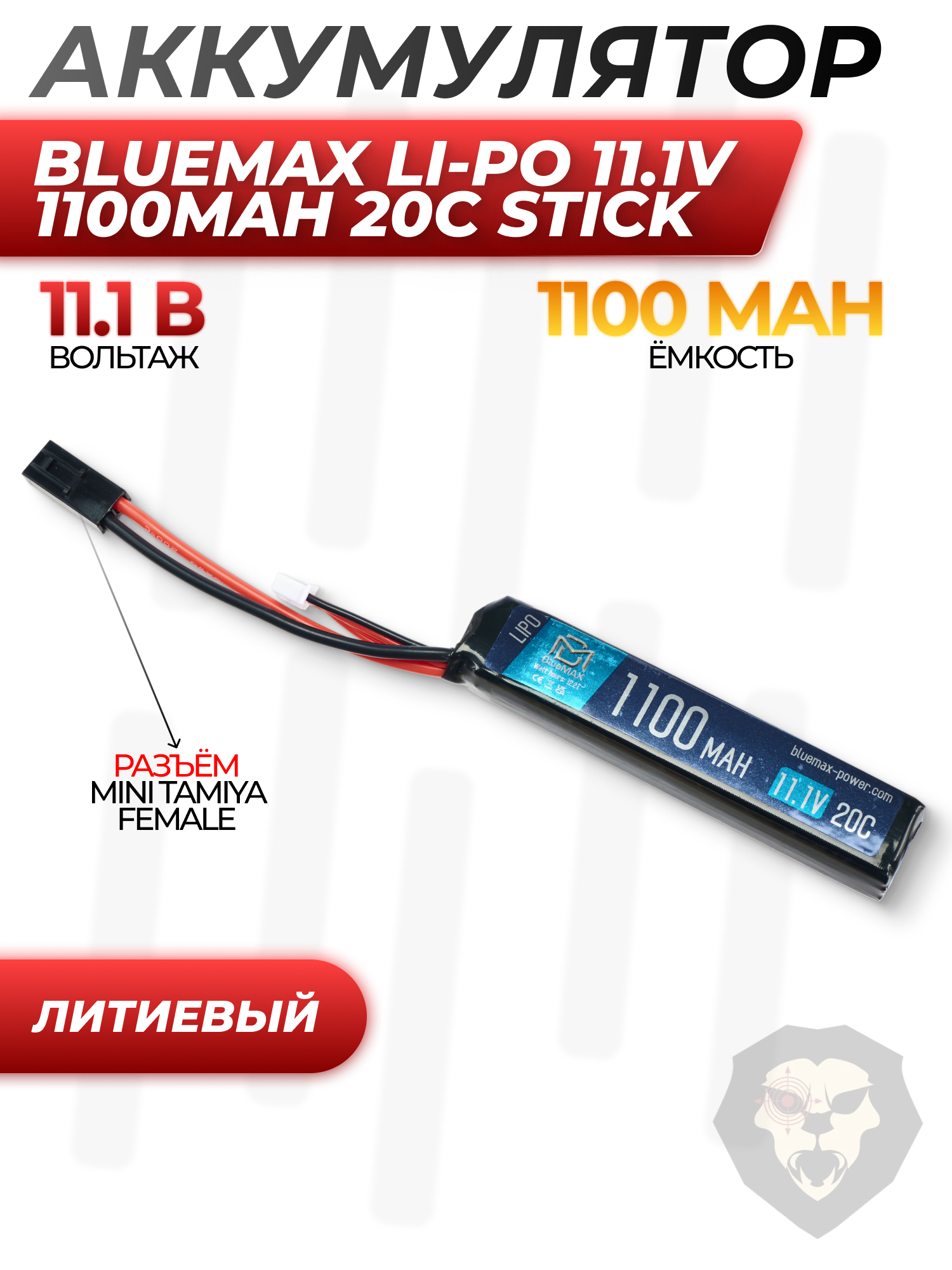 Аккумулятор BlueMax Li-Po 11.1V 1100mAh 20C Stick (14.5x21x102 мм, Mini Tamiya) купить в интернет-магазине Popadiv10.
