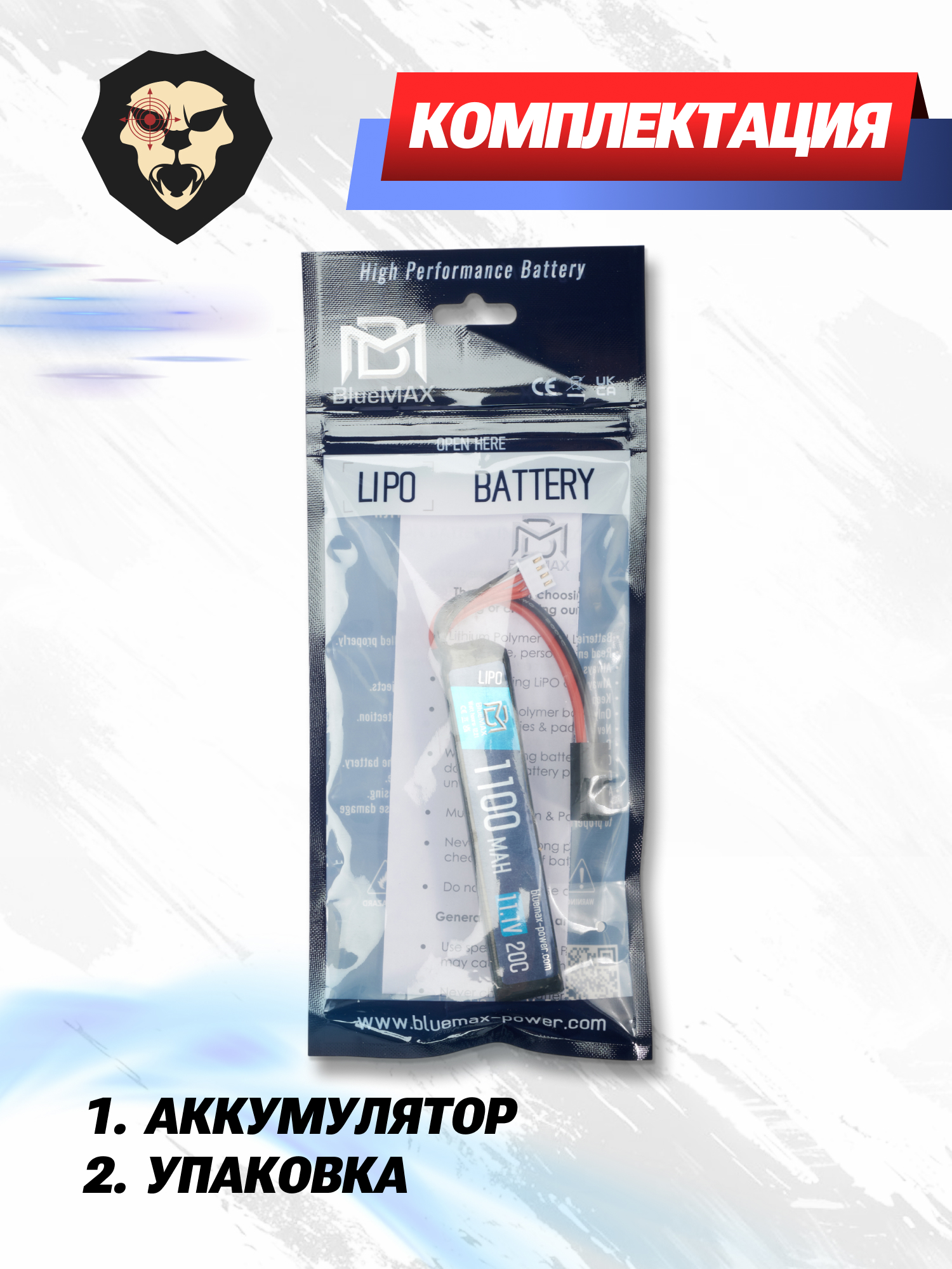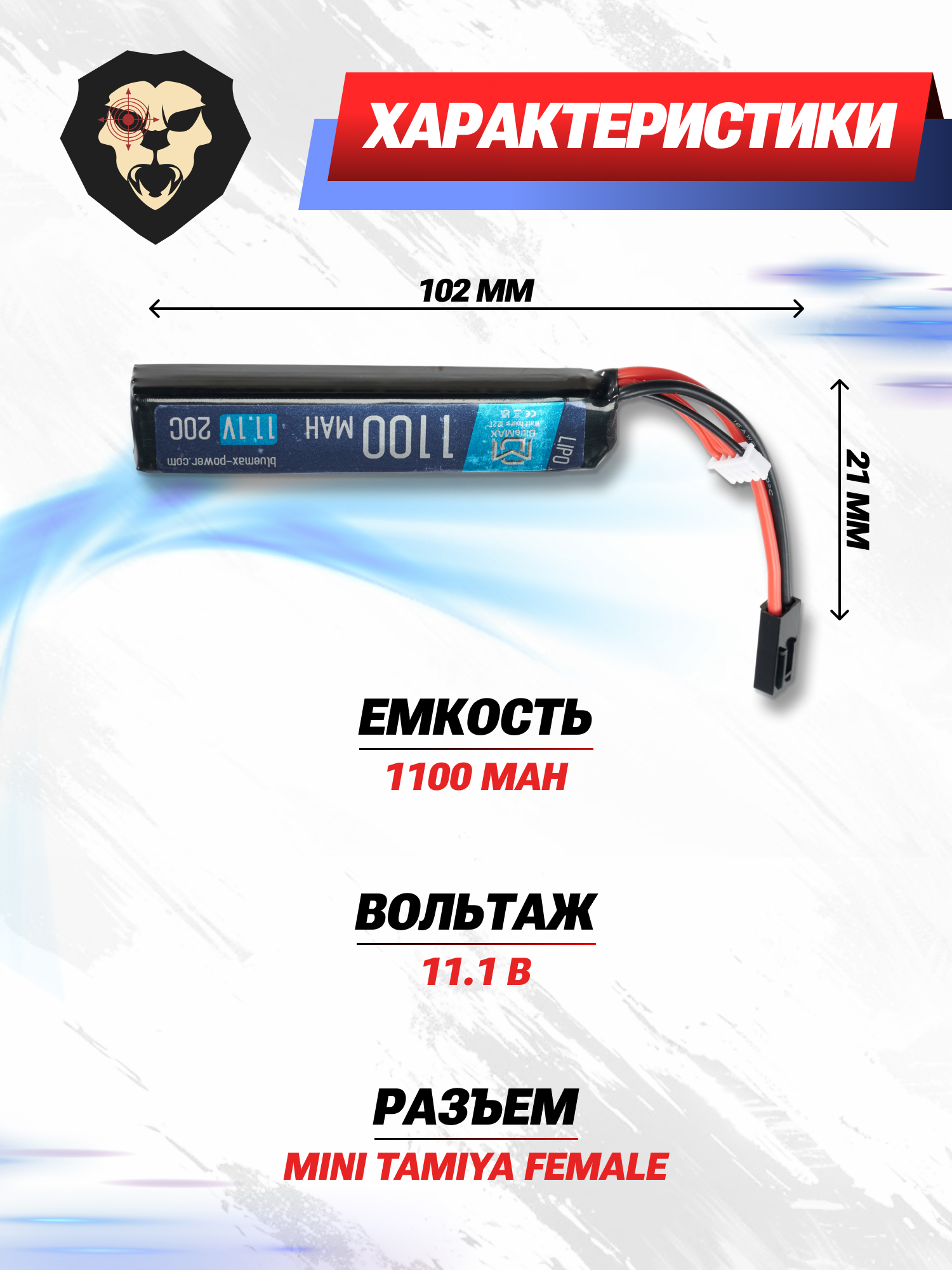 Габариты источника энергии составляют 14.5x21x102 мм. Важно убедиться, что размеры батареи соответствуют ограничениям и требованиям оружия. Также BlueMax наделен высокой энергетической плотностью и благодаря этому дает высокий уровень энергии для питания системы пневматики.