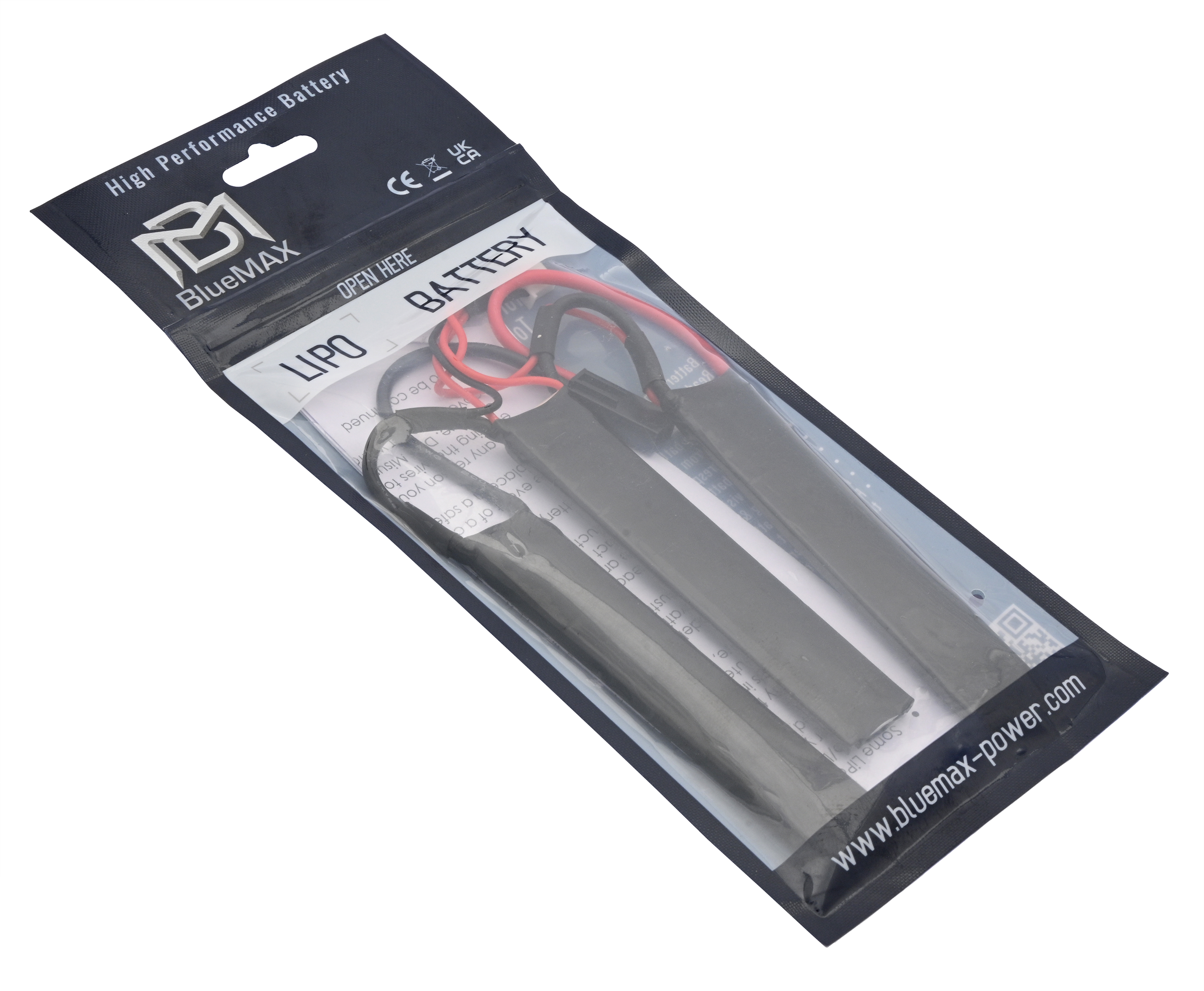 C-рейт у обозреваемого устройства равен 20, такой показатель гарантирует, что аккумулятор BlueMax Li-Po 11.1V способен выдать высокий уровень мощности во время работы. Пневматическое оружие будет получать необходимую энергию без сбоев или снижения производительности.