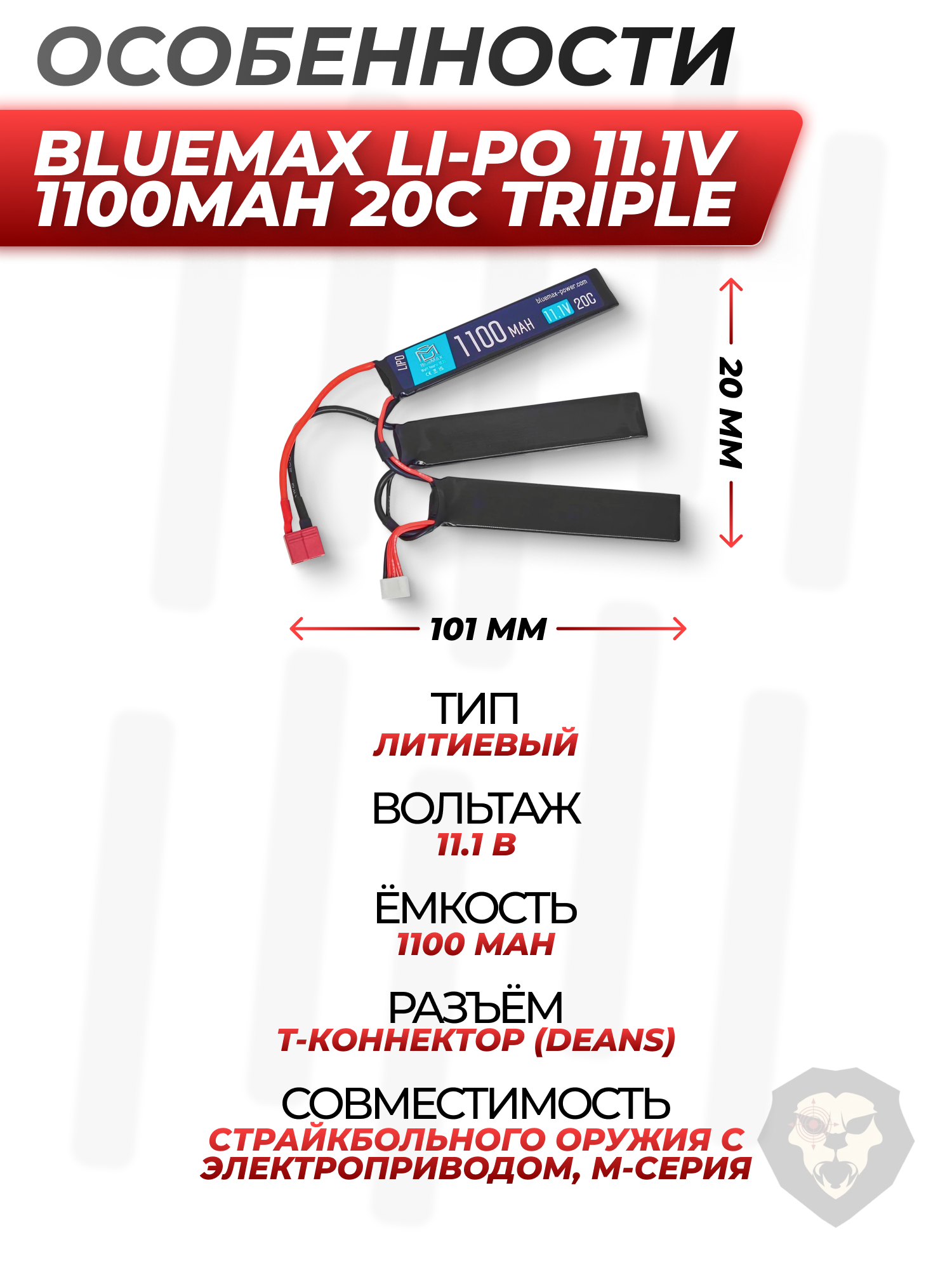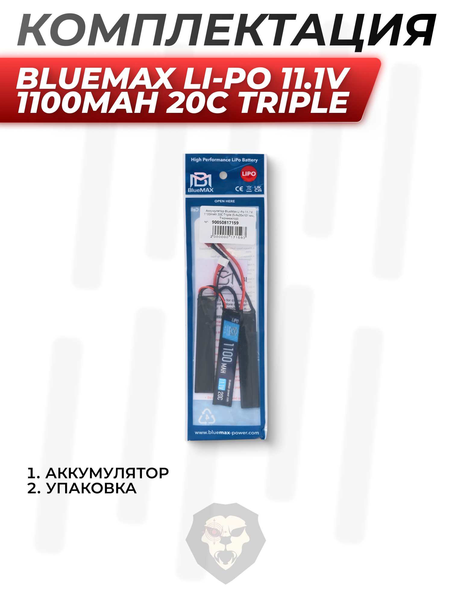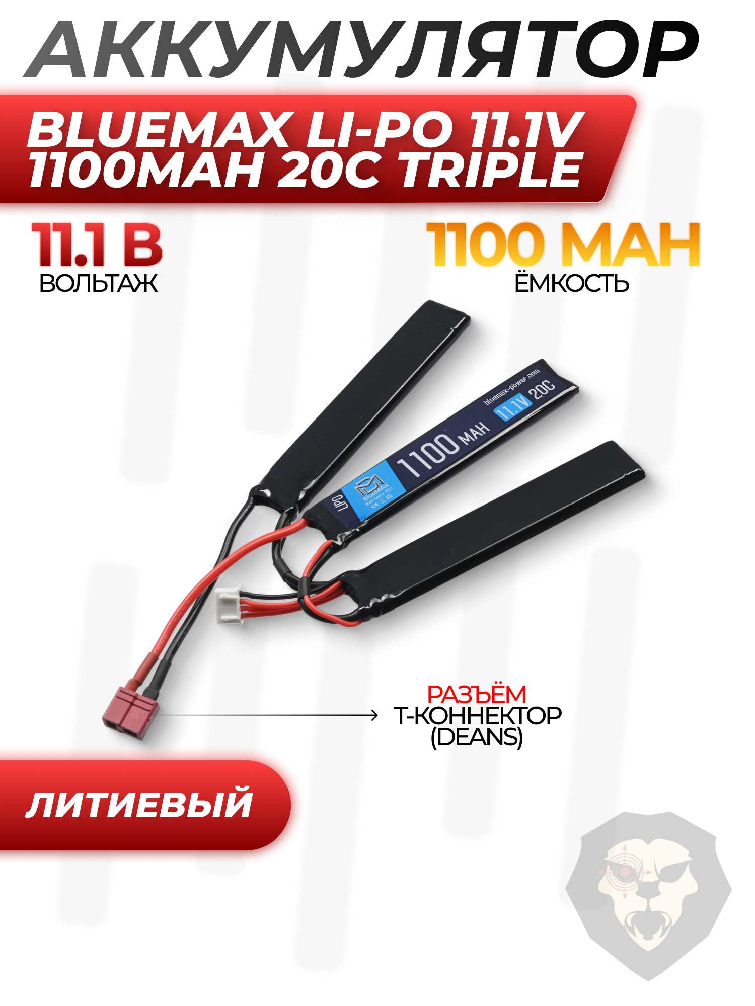Аккумулятор BlueMax Li-Po 11.1V 1100mAh 20C Triple (5.4x20x101 мм, Т-коннектор) купить в интернет-магазине Popadiv10.