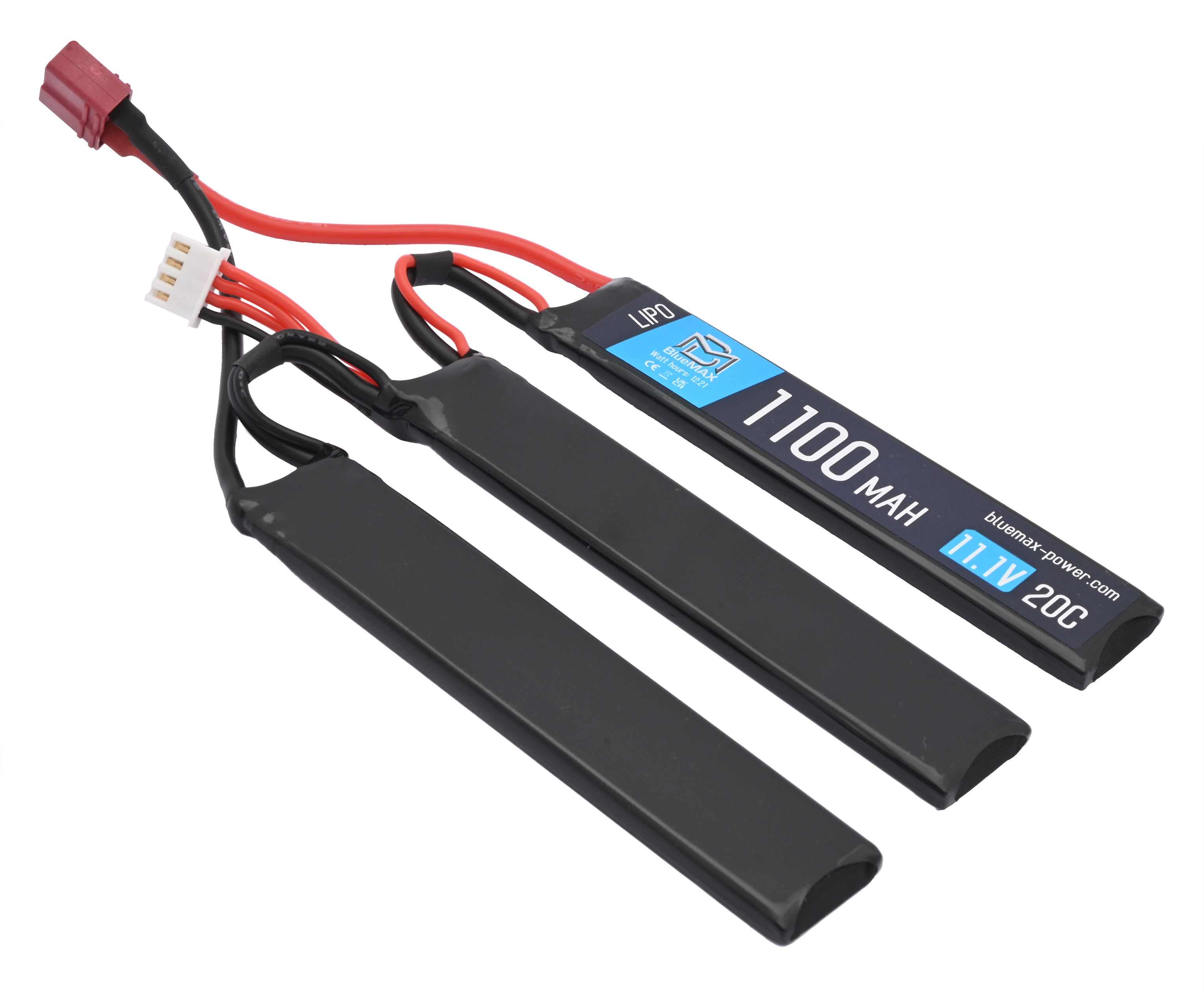 Пополняя товарный ряд, изготовитель представил сборку из трех сегментов, суммарная емкость которых составляет 1100 mAh при степени токоотдачи 20C. Аккумулятор для страйкбольных приводов выполнен на основе литий-полимерных ячеек. Благодаря особенностям электролита отсутствуют просадки по напряжению в случае большой нагрузки, при этом заявленного вольтажа будет достаточно для AEG пневматики как в стоке, так и с тюнингом гирбокса под высокую начальную скорость шара.