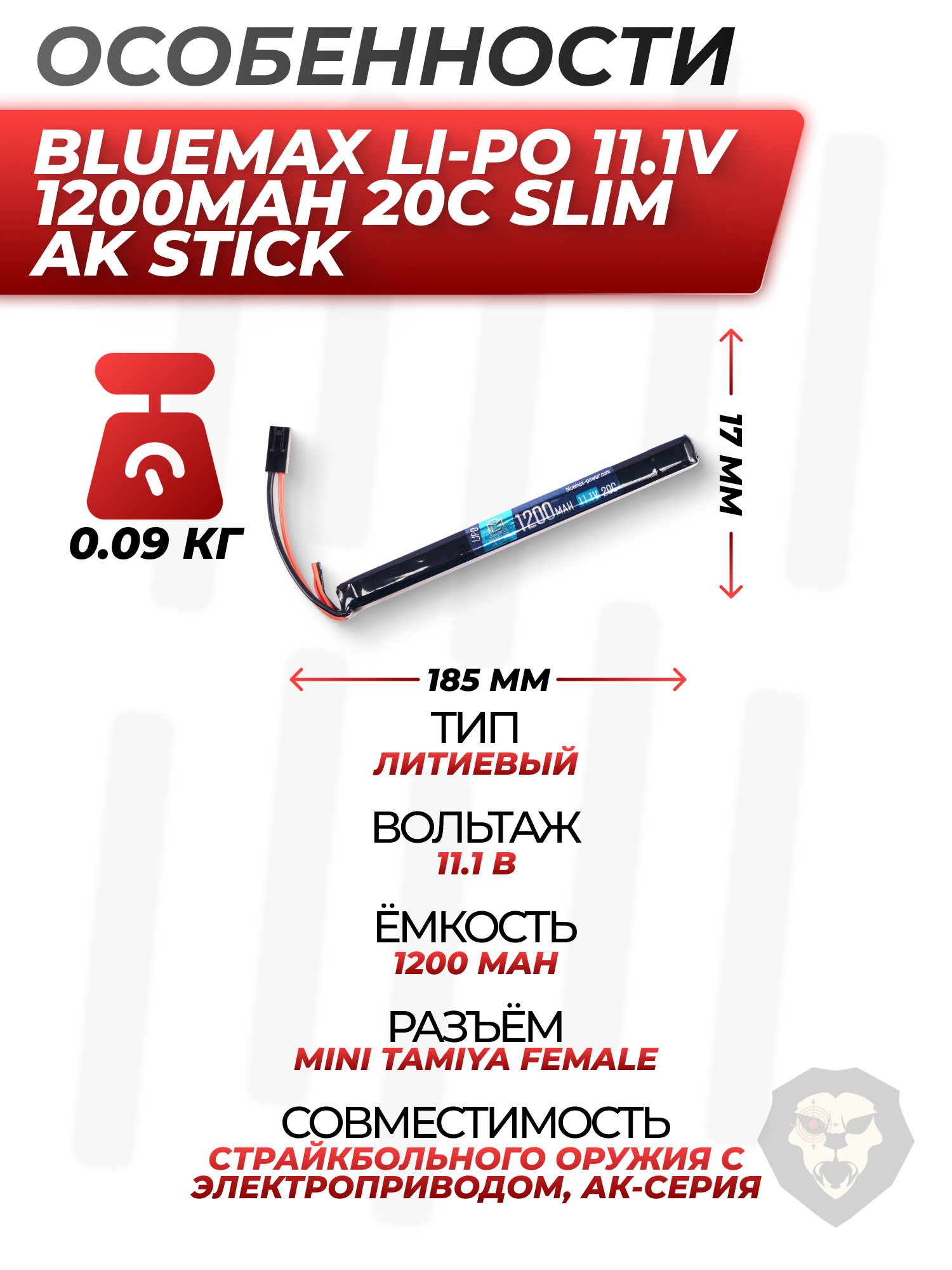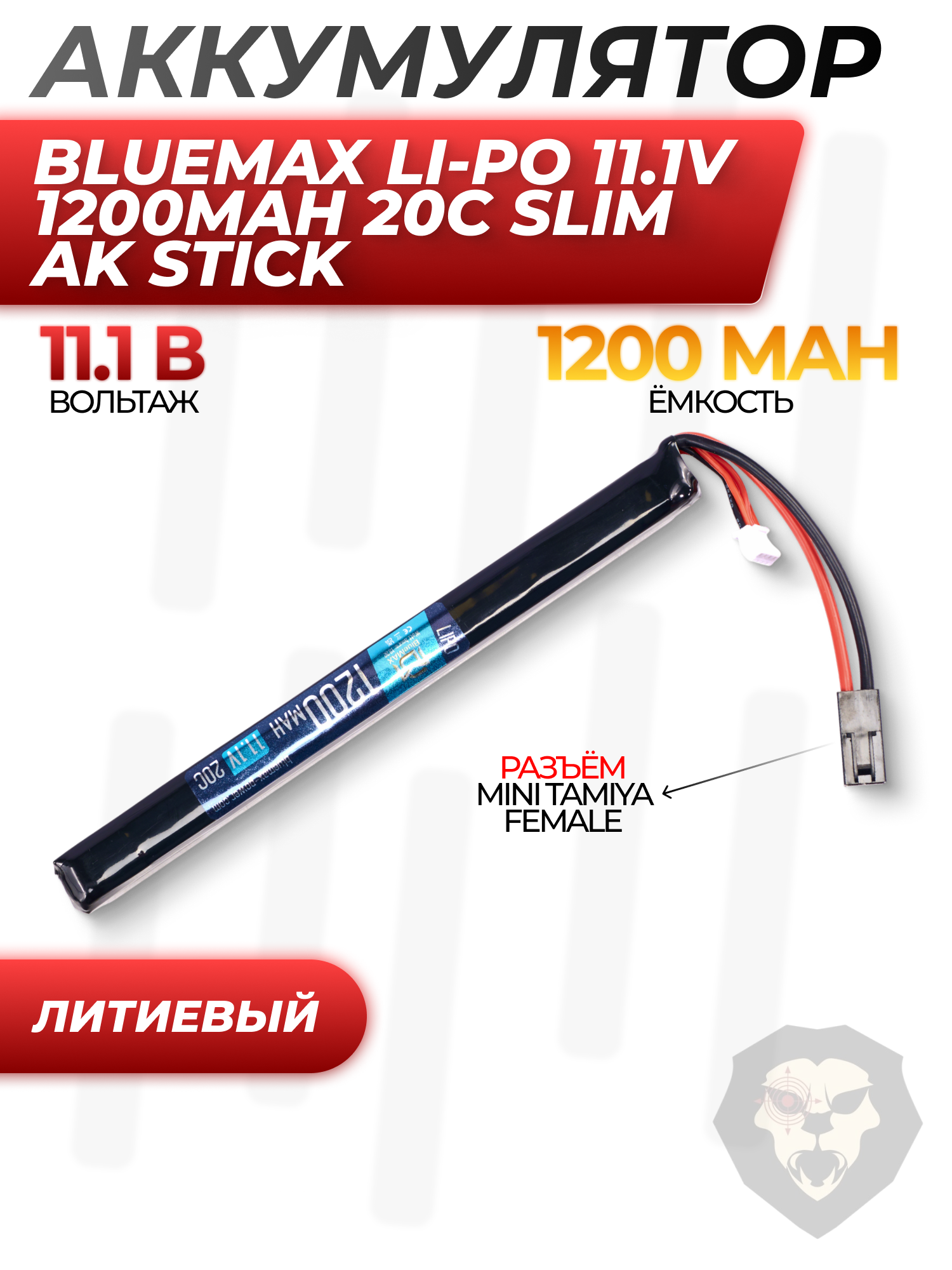 Аккумулятор BlueMax Li-Po 11.1V 1200mAh 20C Slim AK Stick (17x17x185 мм, Mini Tamiya) купить в интернет-магазине Popadiv10.