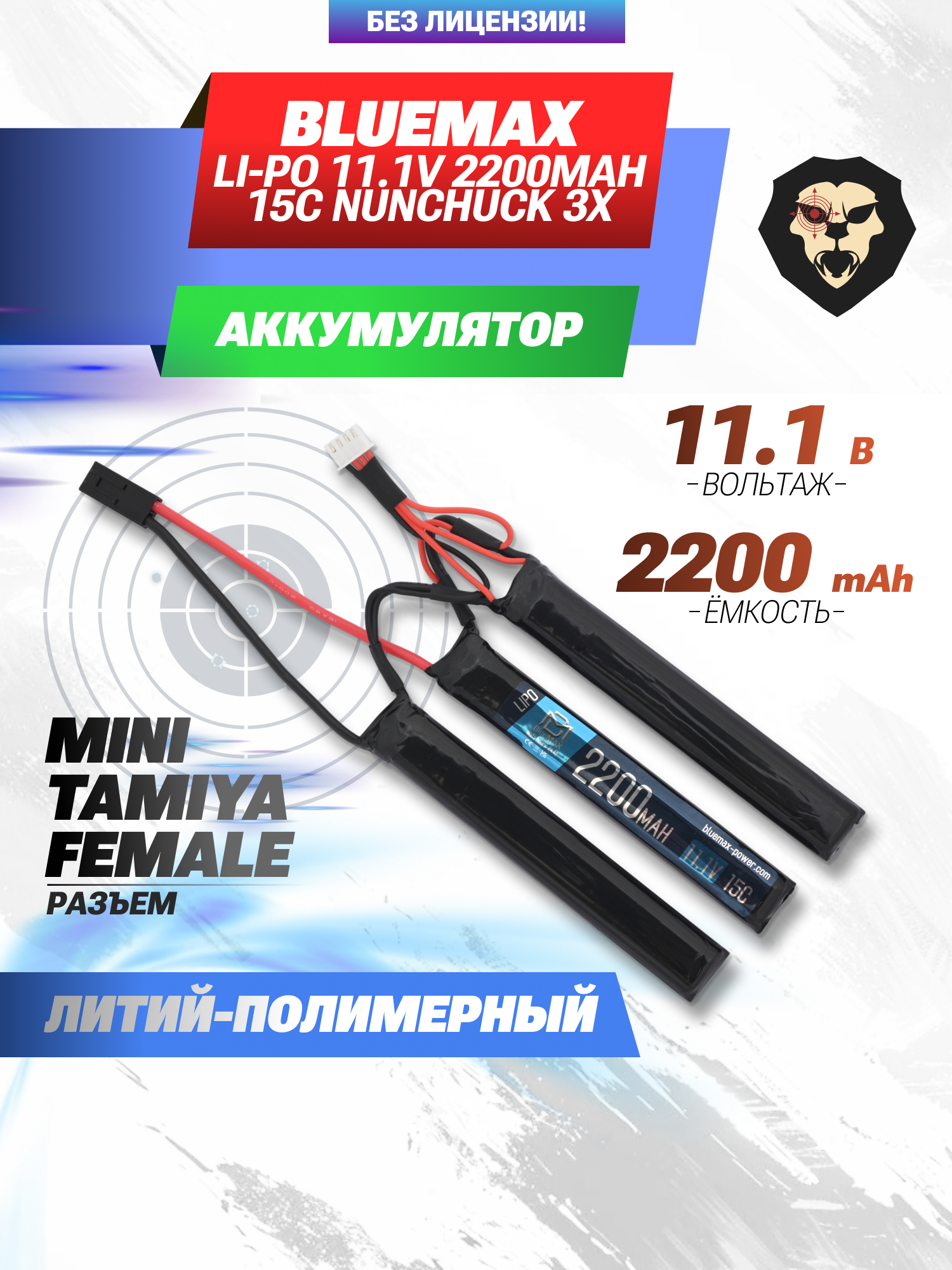 Аккумулятор BlueMAX Li-Po 11.1V 2200mAh 15C Nunchuck 3x (102x20x12 мм, Mini Tamiya) купить в интернет-магазине Popadiv10.