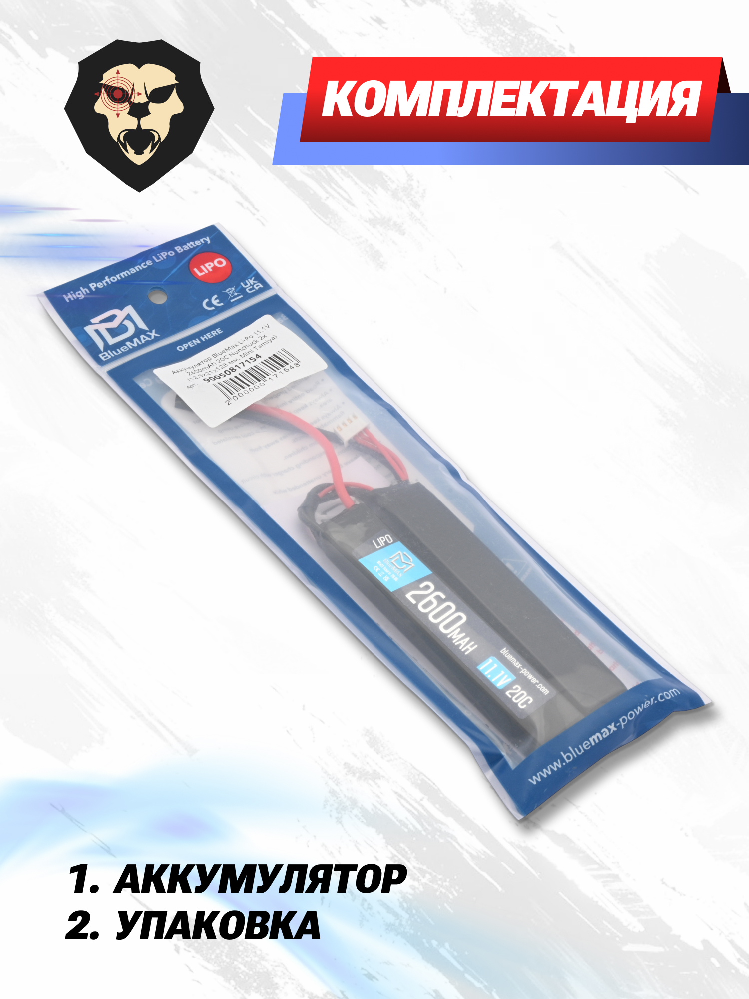 Артикул производителя 644990430 Аккумулятор BlueMax Li-Po 11.1V 2600mAh 20C Nunchuck 2x (12.5x21x128 мм, Mini Tamiya) по низкой цене 3650 руб. Модель со штрихкодом производителя Вы можете оплатить наложенным платежем с доставкой или в отделении транспортной компании (ПЭК, СДЭК, Boxberry). Ваш заказ со штрихкодом 2000000171548 забрать на почте с оплатой при получении в любой части Российской Федерации.