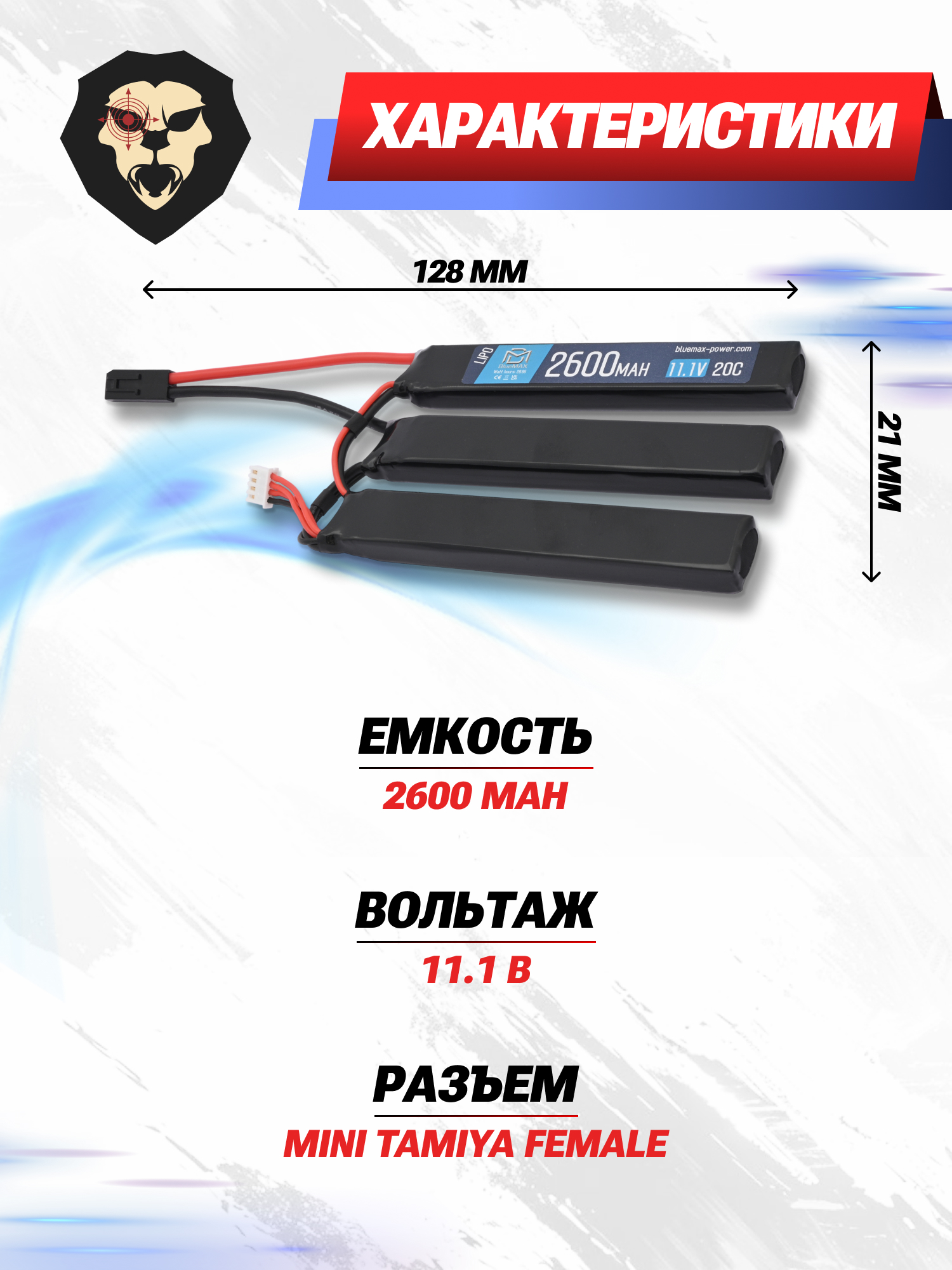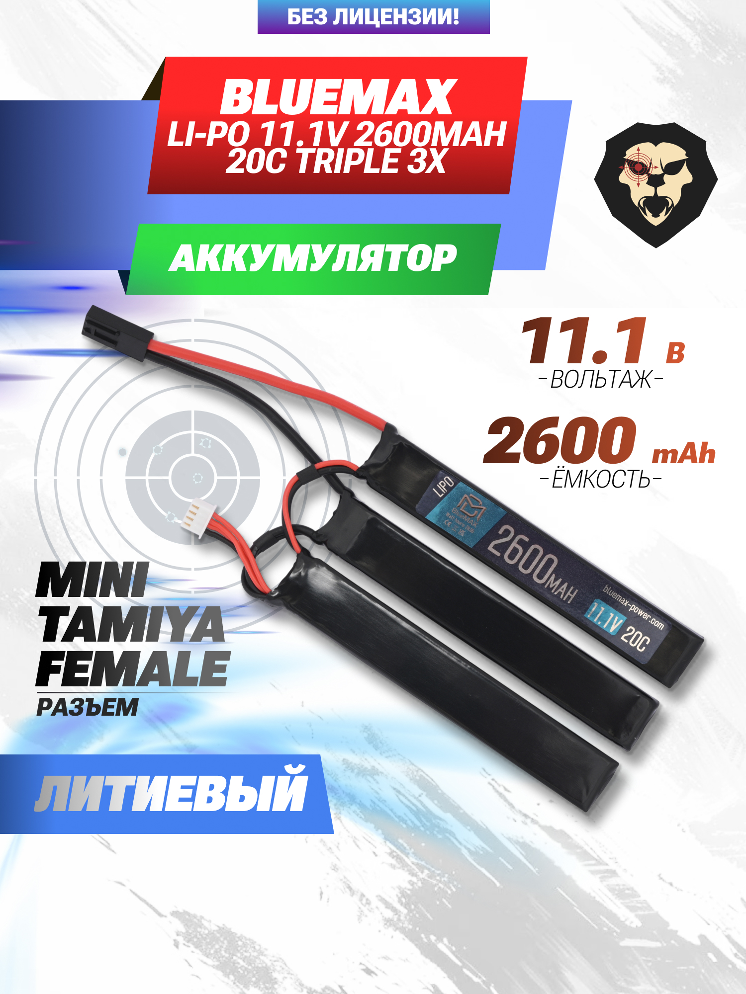 Аккумулятор BlueMax Li-Po 11.1V 2600mAh 20C Triple 3x (12.5x21x128 мм, Mini Tamiya) купить в интернет-магазине Popadiv10.
