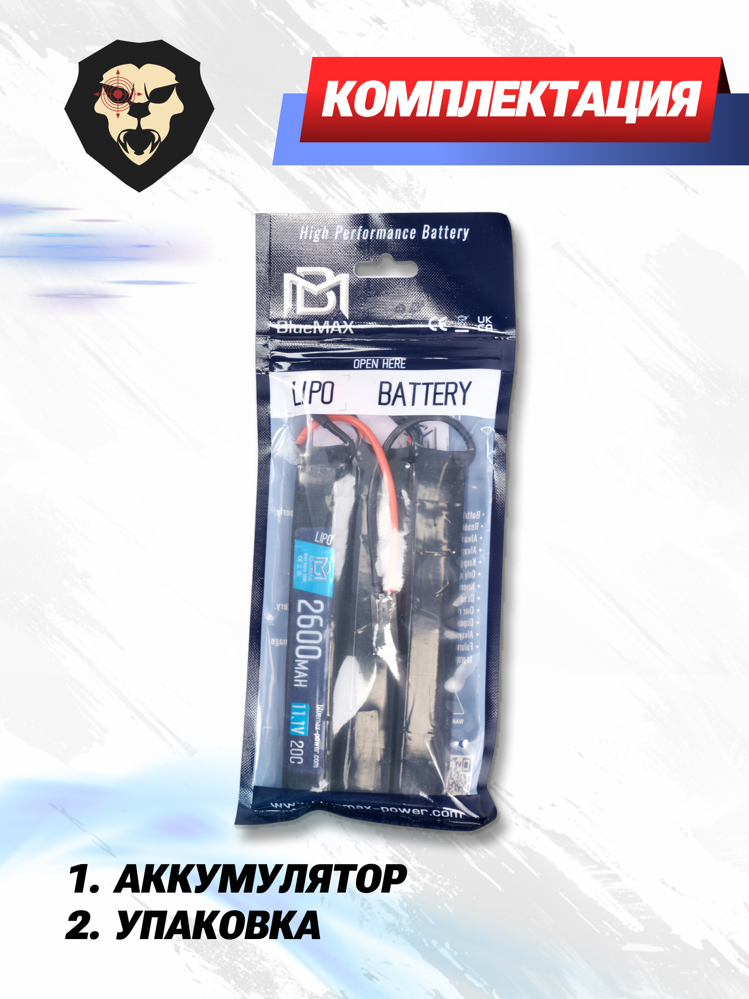 У аккумулятора BlueMax Li-Po емкость равняется 2600mAh, что дает пневматике работать в течение продолжительного времени без необходимости частой замены или перезарядки. Это важно во время затяжных стрелковых соревнований или тренировок.