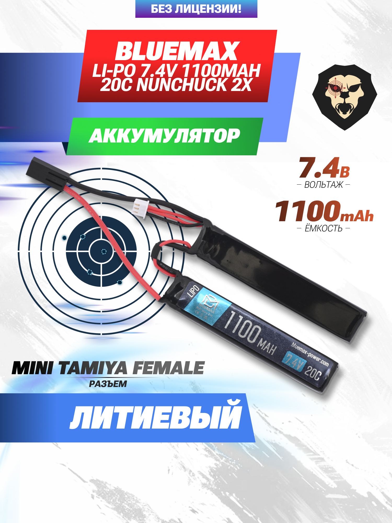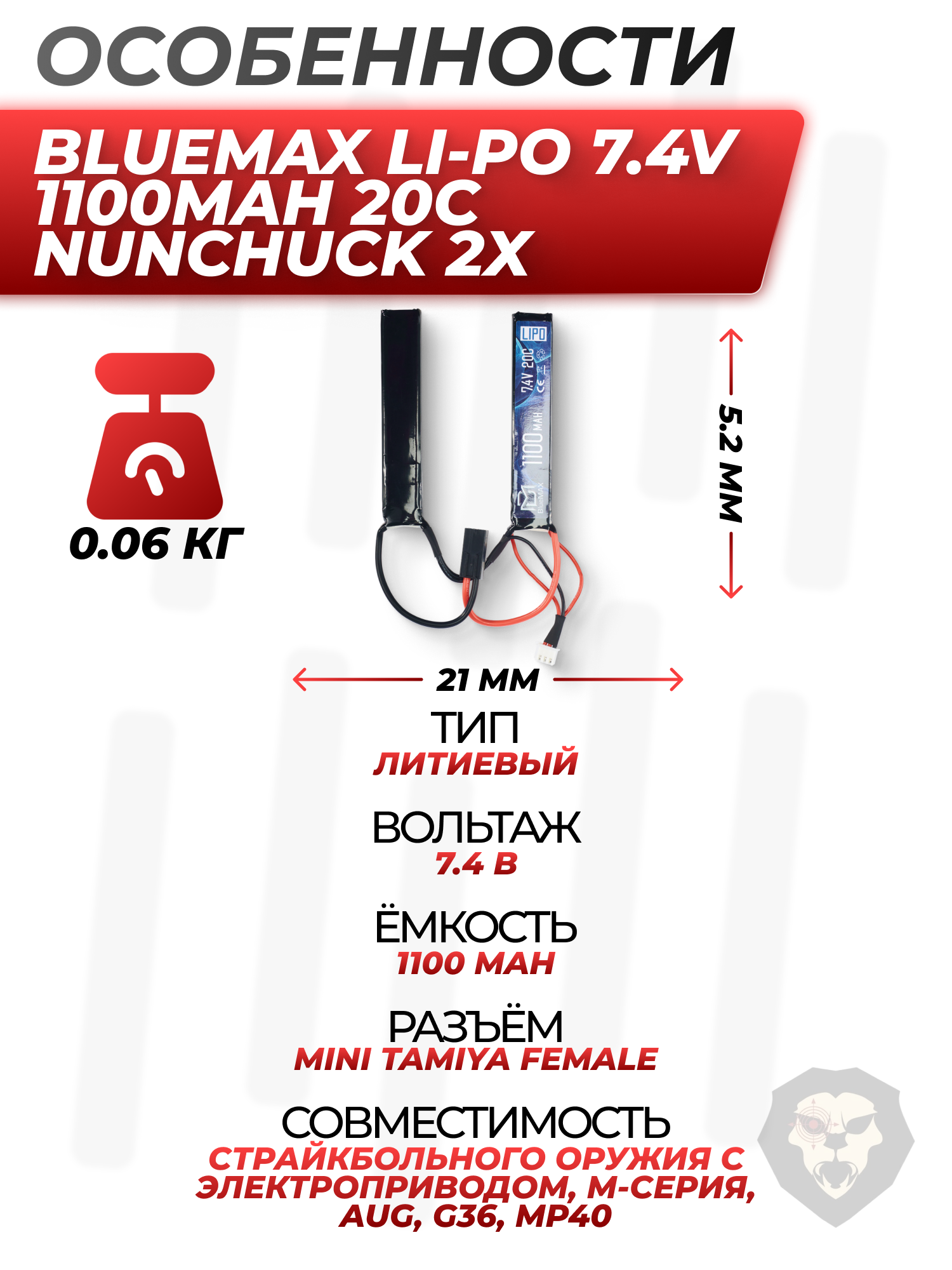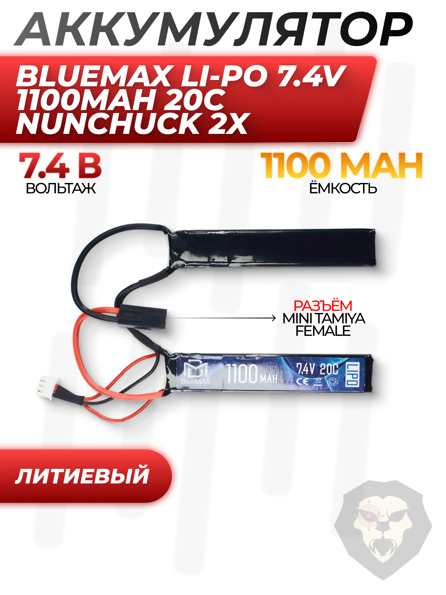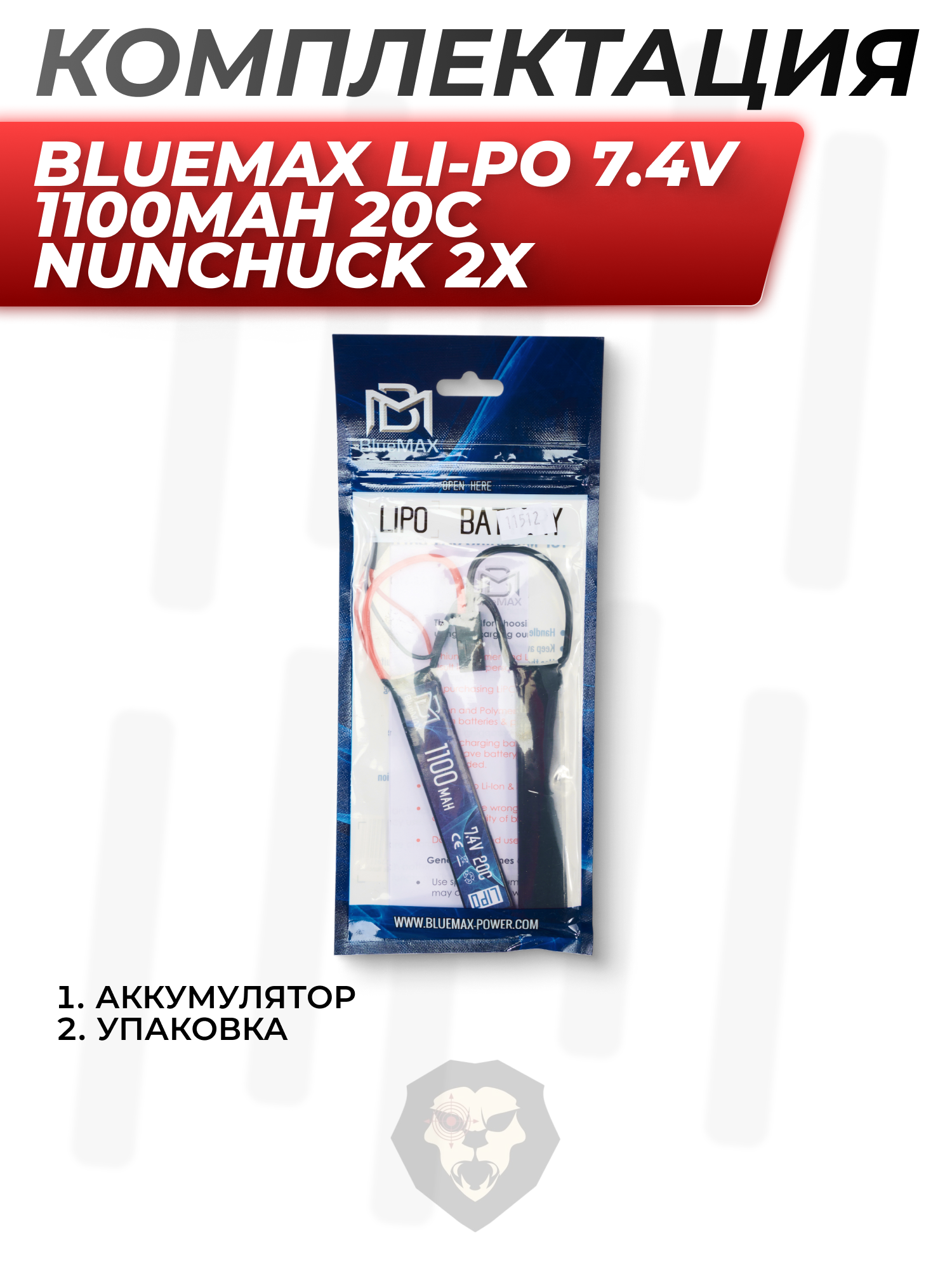 Аккумулятор BlueMax Li-Po 7.4V 1100mAh 20C Nunchuck 2x (5.2x21x102 мм) купить в интернет-магазине Popadiv10.