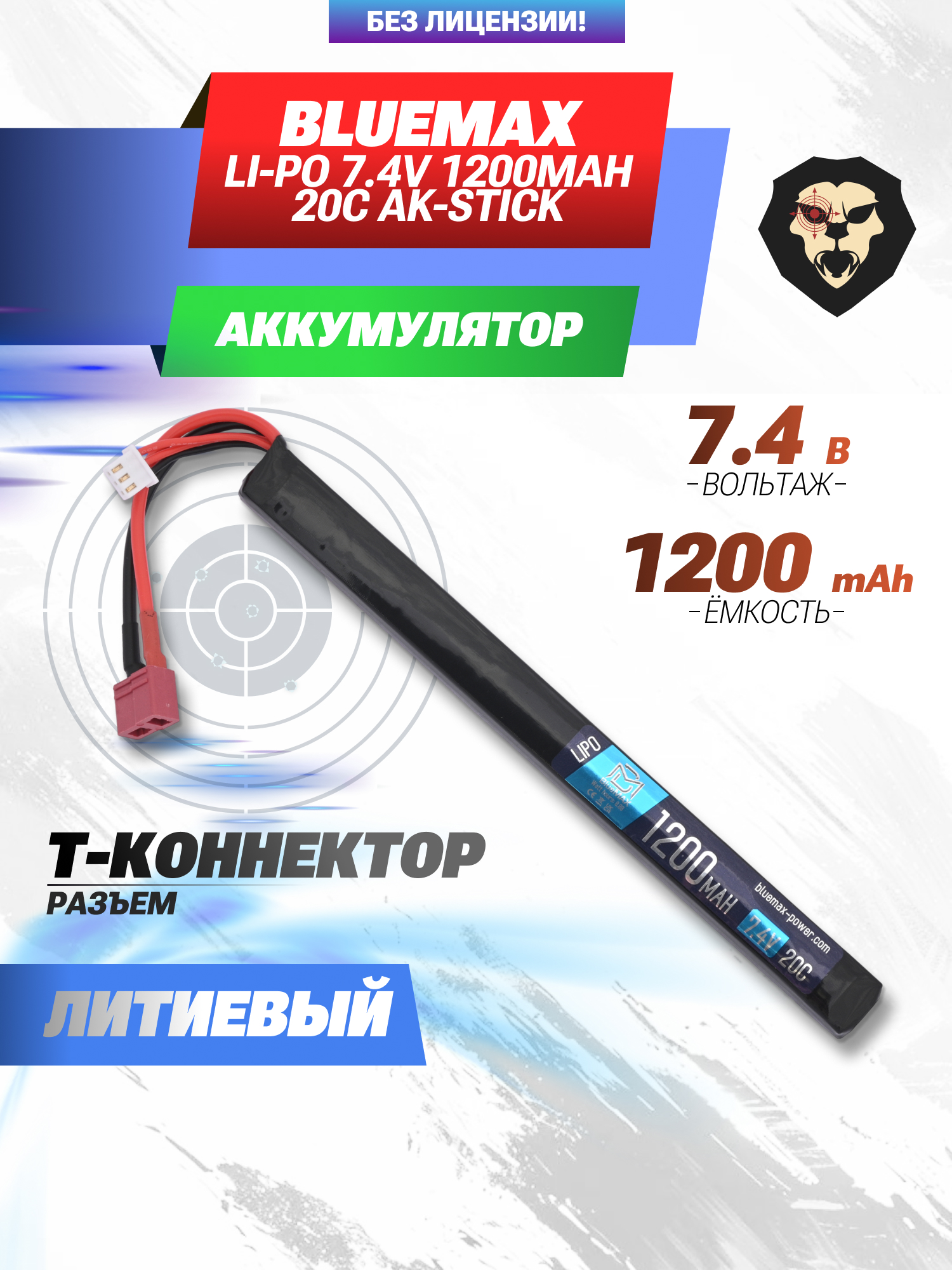 Аккумулятор BlueMax Li-Po 7.4V 1200mAh 20C AK-stick (14.5x14x185 мм, T-connector) купить в интернет-магазине Popadiv10.