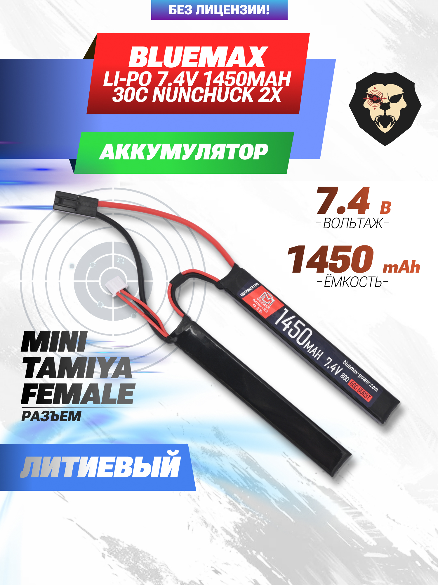 Аккумулятор BlueMAX Li-Po 7.4V 1450mAh 30C Nunchuck 2x (7.5x17x115 мм, Mini Tamiya) купить в интернет-магазине Popadiv10.
