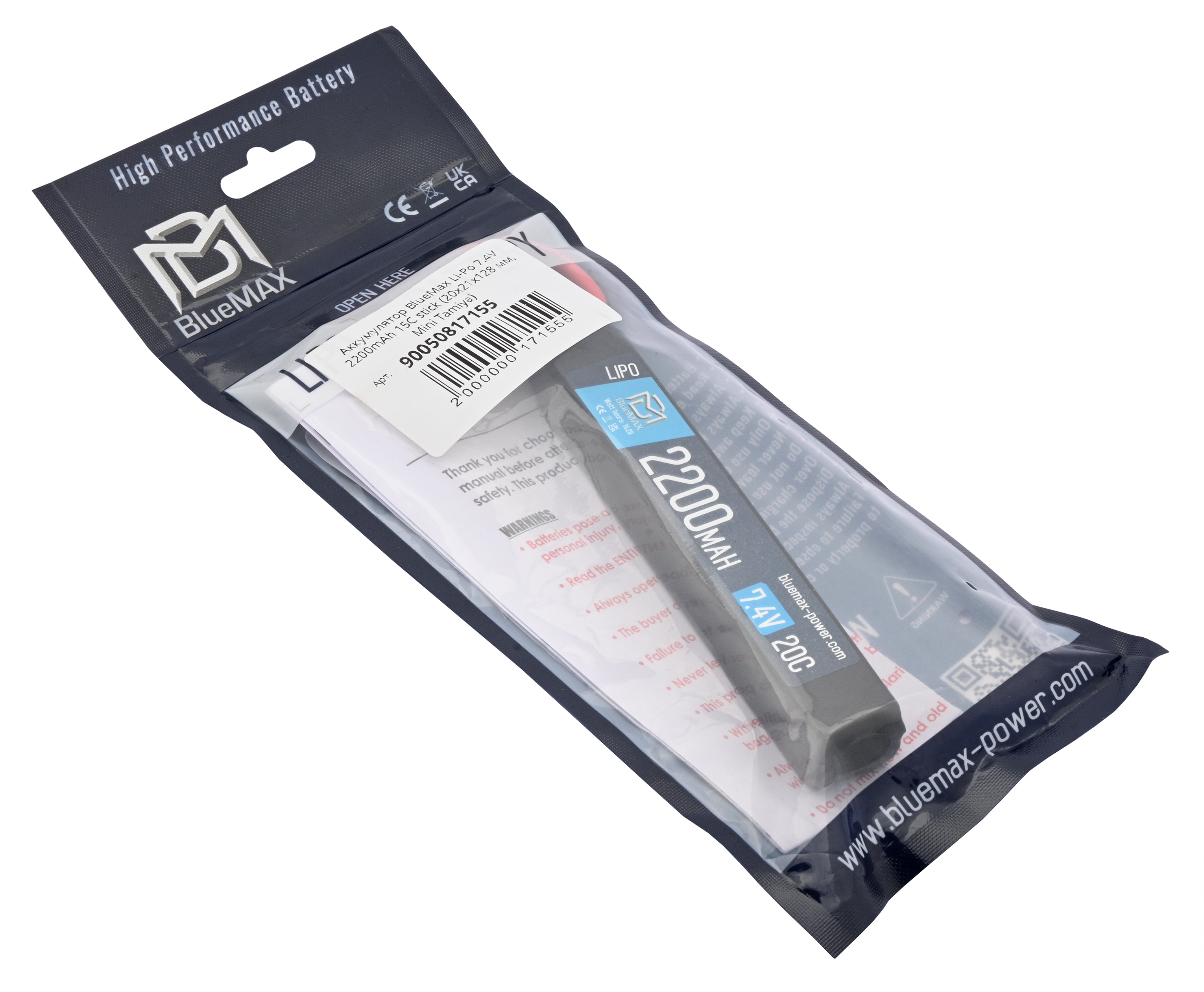 Аккумулятор BlueMax Li-Po 7.4V 2200mAh 20C stick (20x21x128 мм, Mini Tamiya) купить в интернет-магазине Popadiv10.