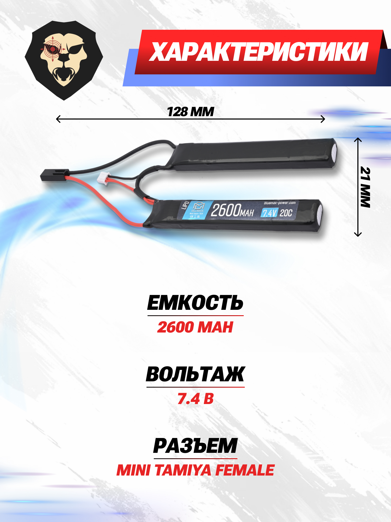 Аккумулятор BlueMax Li-Po 7.4V 2600mAh 20C Nunchuck 2x (128x21x12 мм, Mini Tamiya) купить в интернет-магазине Popadiv10.
