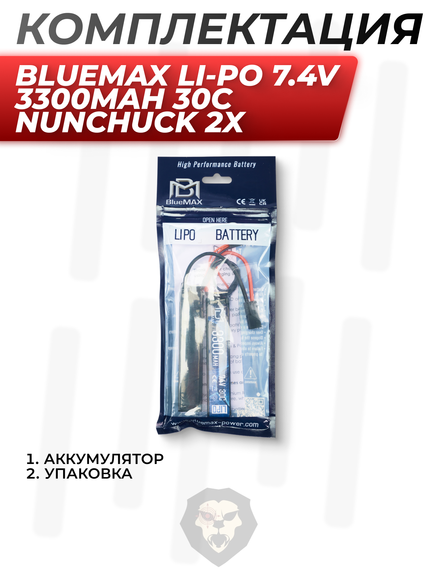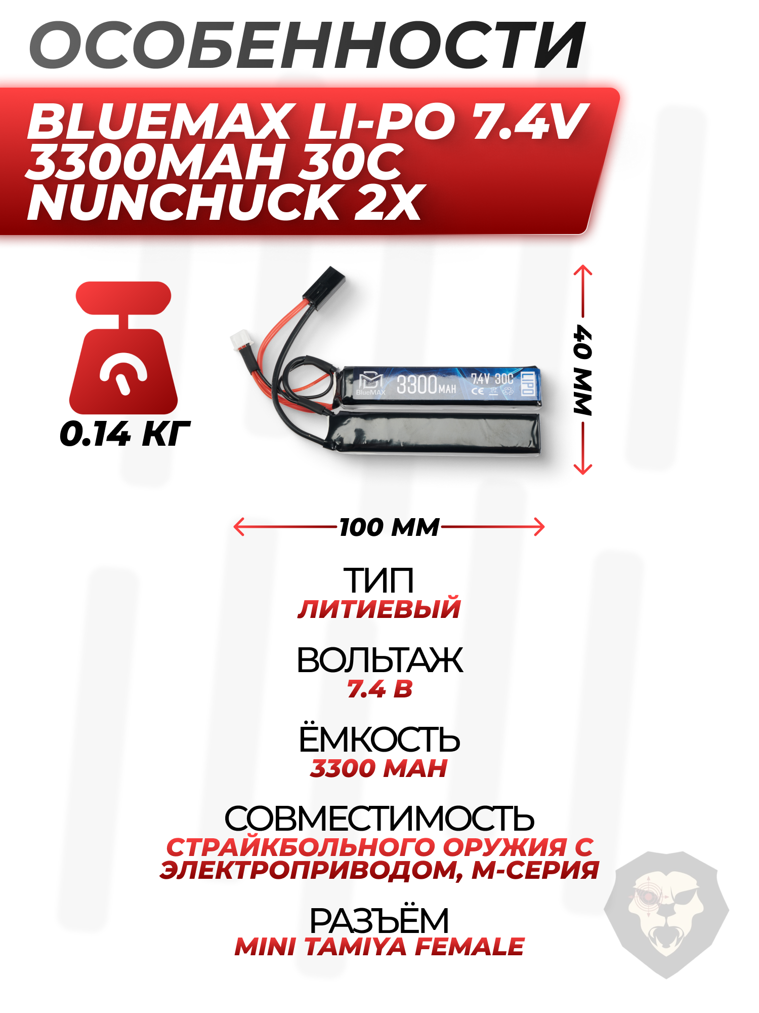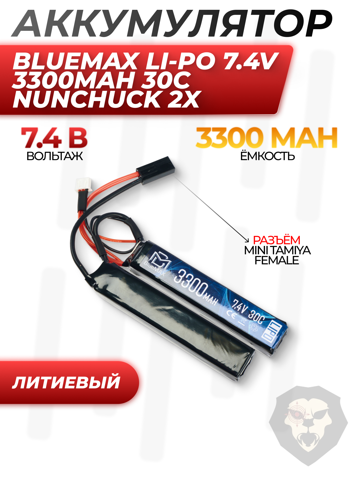 Аккумулятор BlueMax Li-Po 7.4V 3300mAh 30C Nunchuck 2x (19x21x128 мм, Mini Tamiya) купить в интернет-магазине Popadiv10.