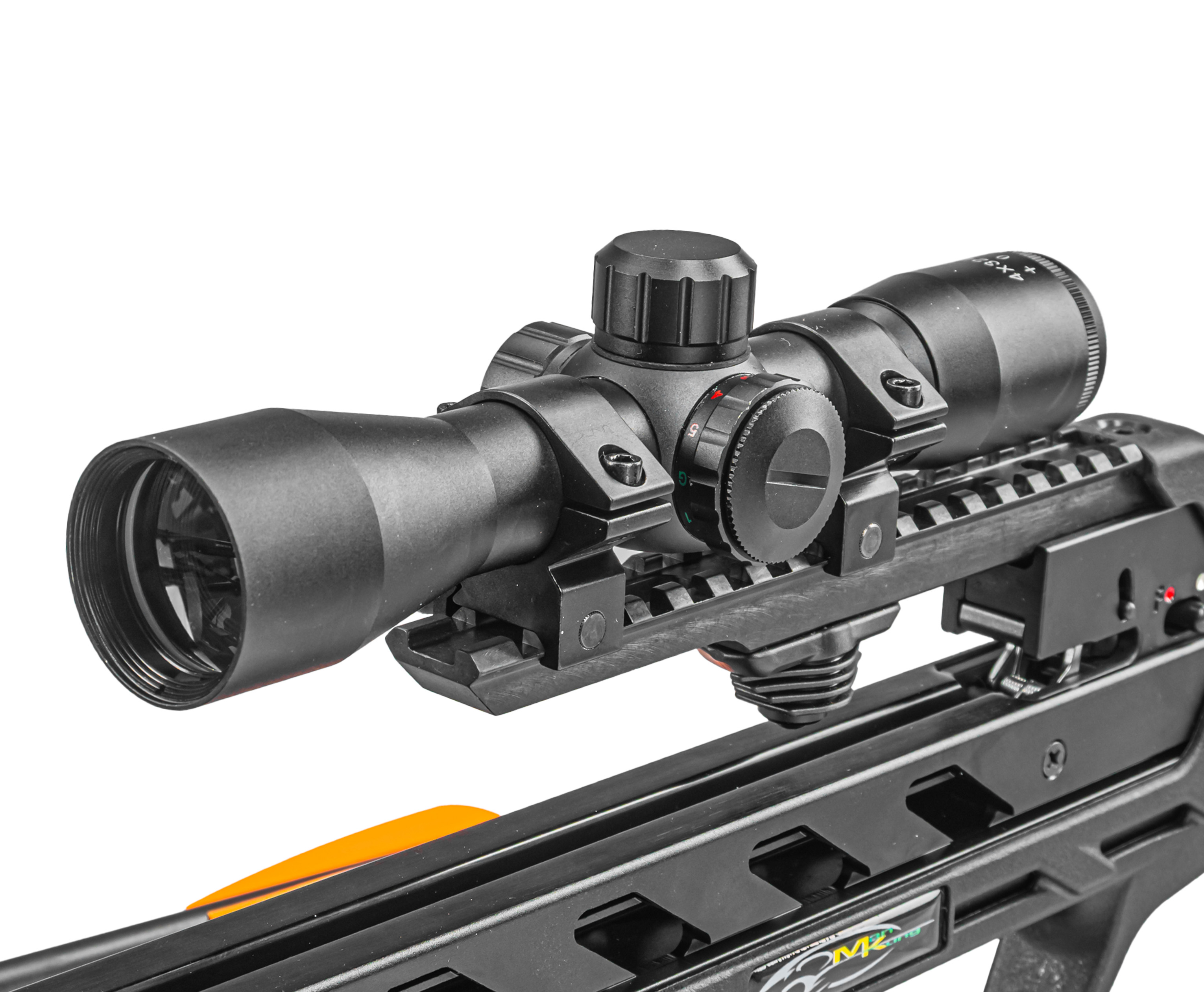 Модель хорошо сбалансирована и снабжена системой виброгасителей, что помогает совершить меткое попадание. По умолчанию арбалет Ман Кунг поставляется совместно с оптическим прицелом. Для наведения можно также использовать любые другие предпочитаемые приспособления, совместимые с направляющей Weaver.