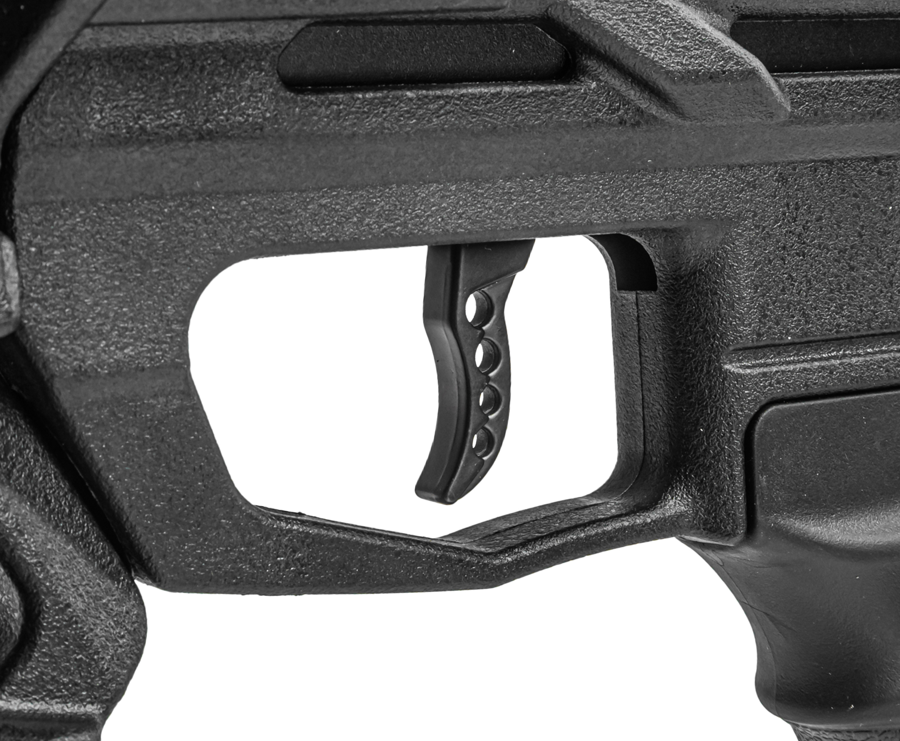 Кроме прочего, задействуется компоновка Булл-Пап. Алюминиевая ствольная база смещена назад за рукоять и оформлена плечевым упором с ребристым тыльником и подщечником - элементы фурнитуры изготавливаются из углепластика. Таким образом, при общей длине изделия 72.4 см показатель массы остался в пределах 3.6 кг.