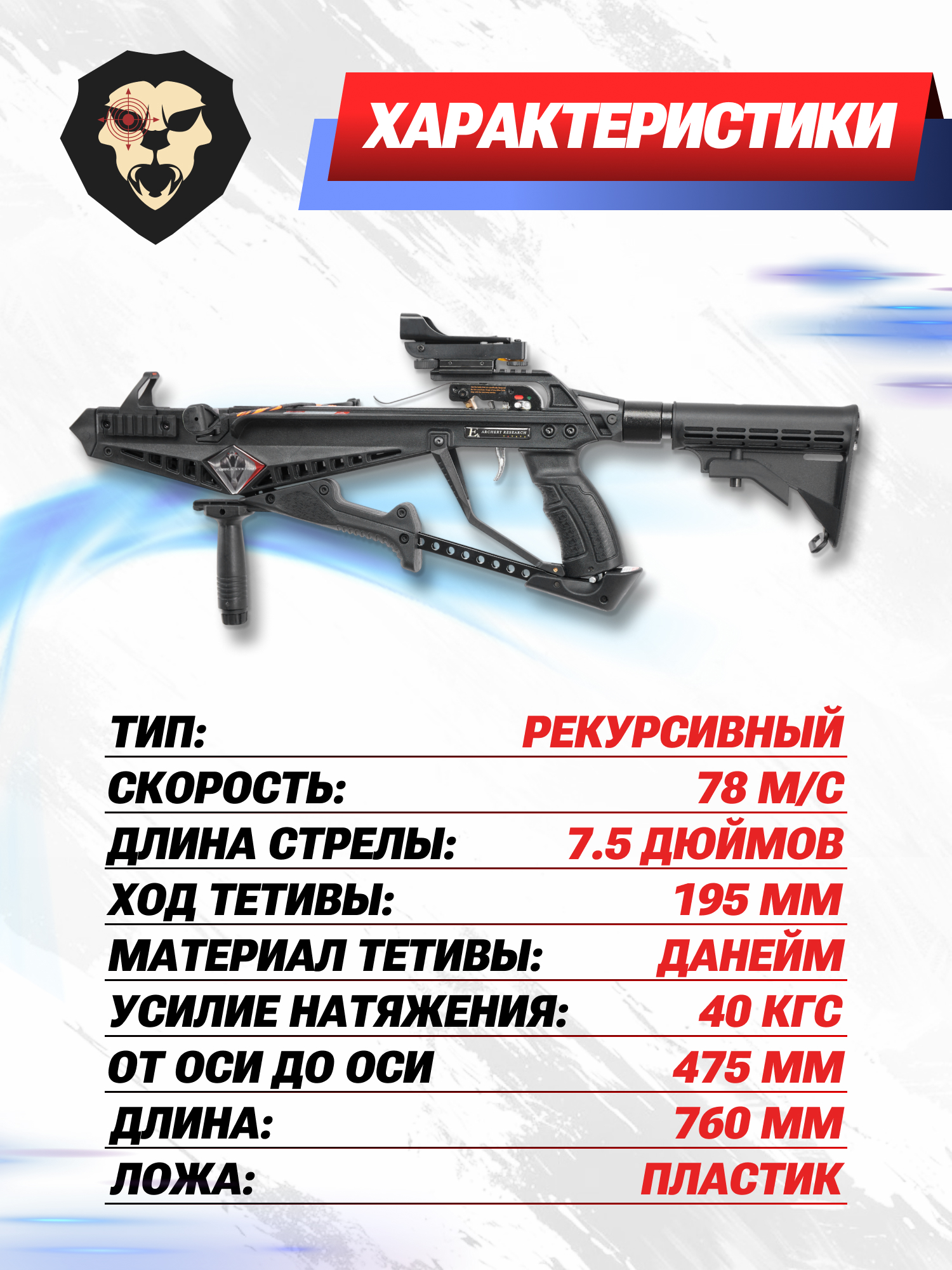 | Рекомендованная длина стрел | 7.5 Дюймов |