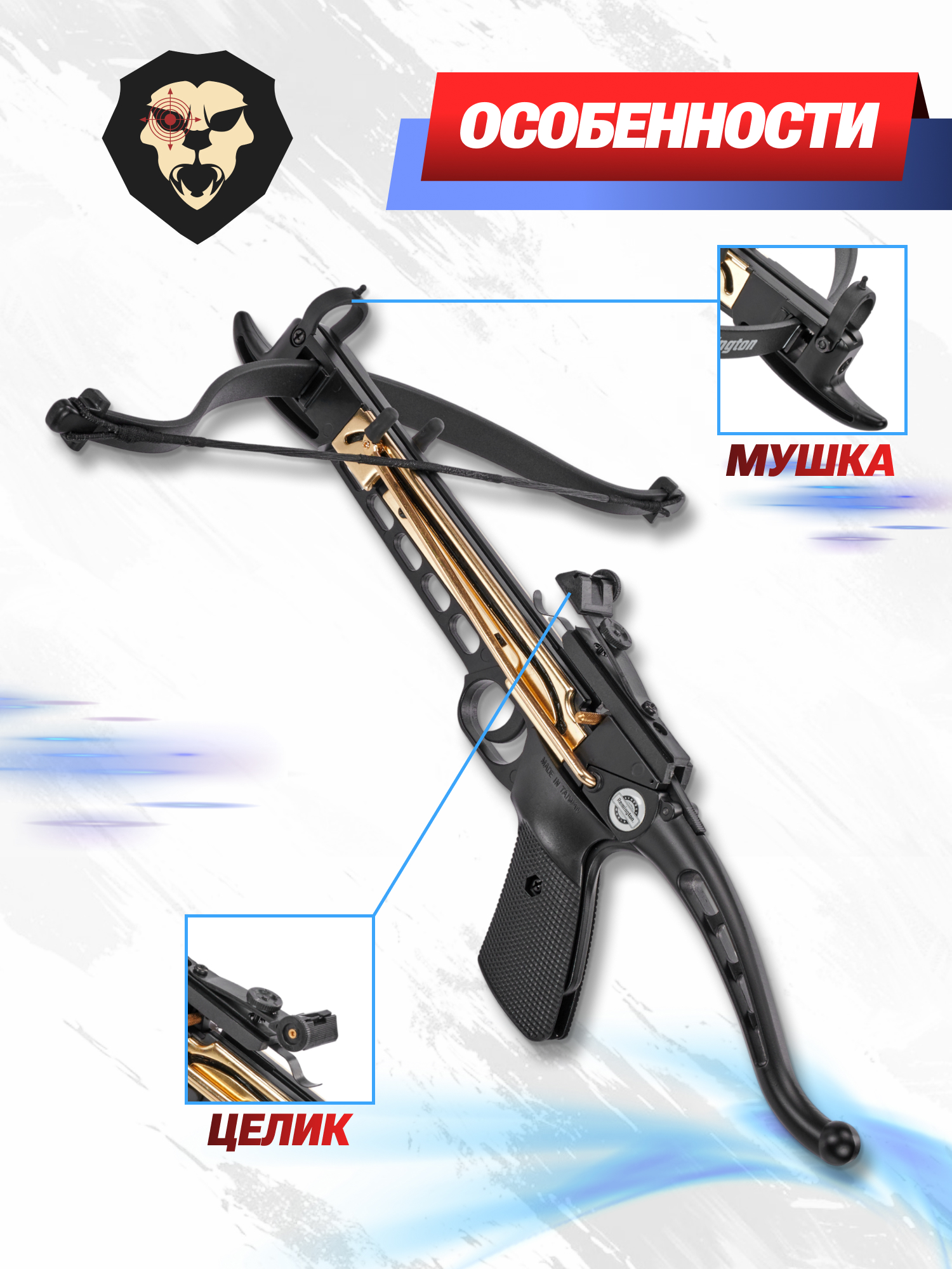 Соответственно арбалет пистолетного типа комфортен в эксплуатации. Размер в 50 см позволит переносить устройство в повседневных рюкзаках, сумках и других подходящих элементах снаряжения.