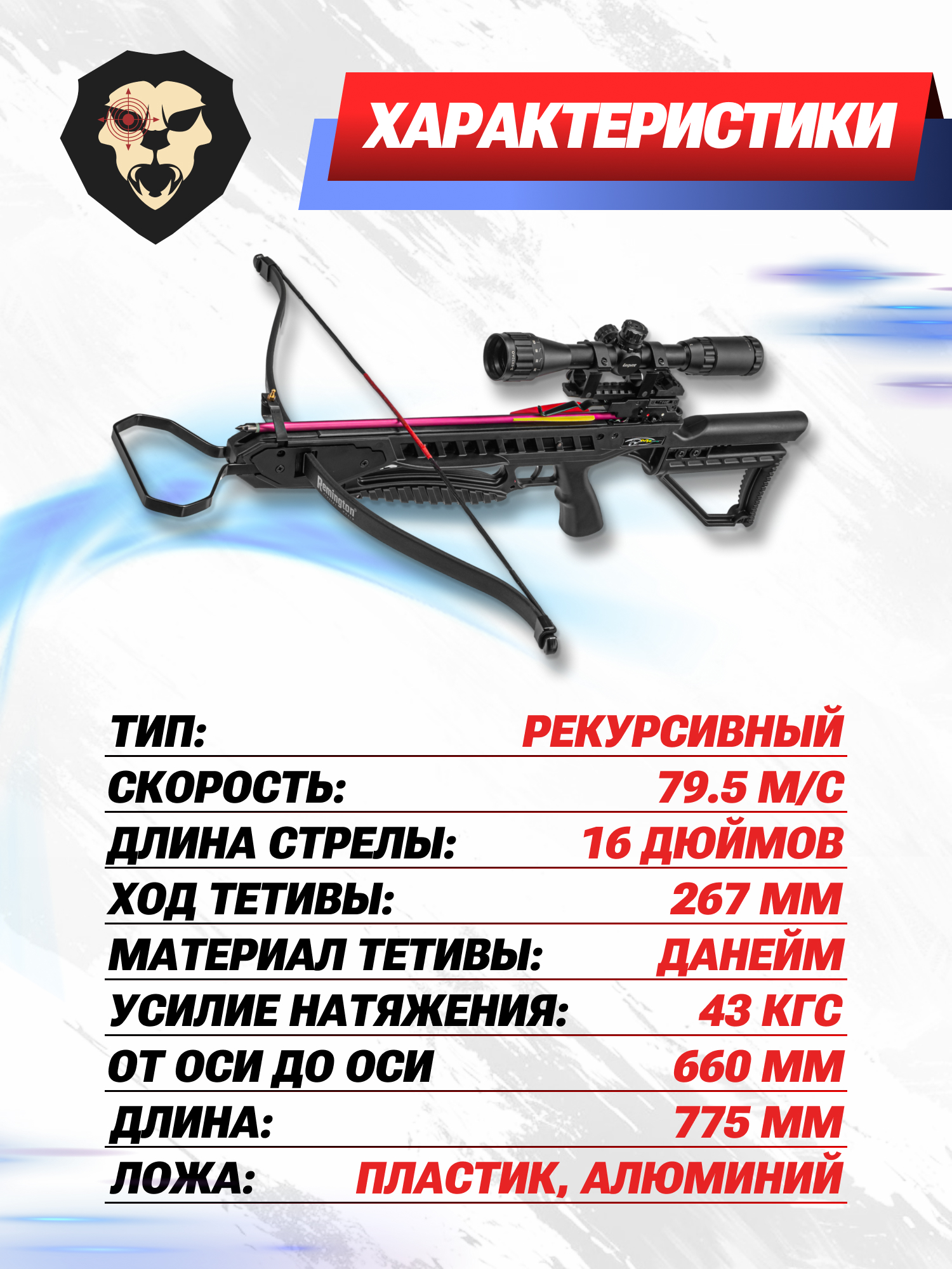 | Рекомендованная длина стрел | 16 дюймов |