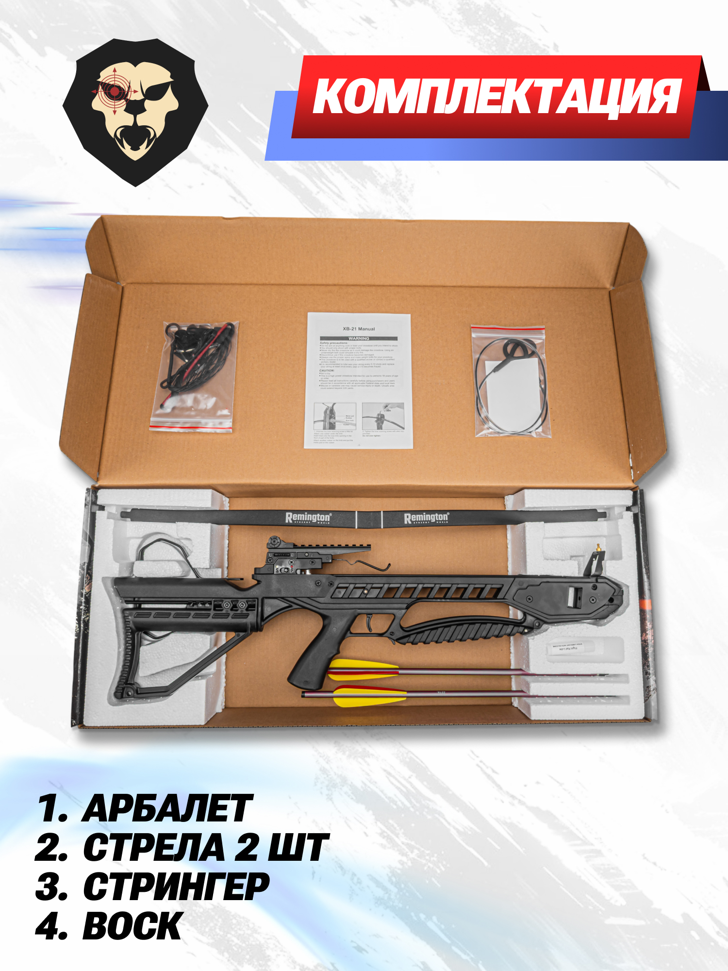 | Комплектация | Арбалет, стрела - 2 шт, стрингер, воск, упаковка |