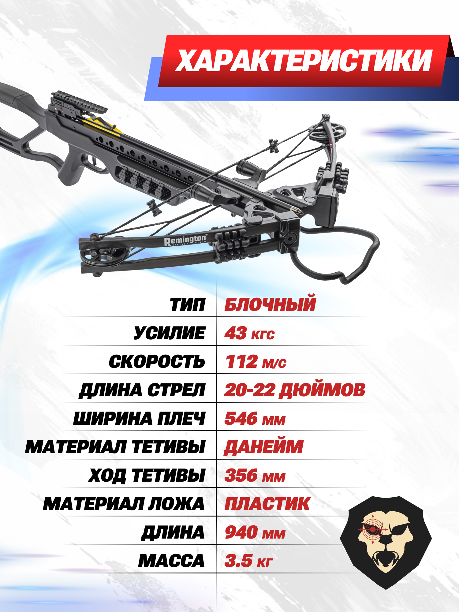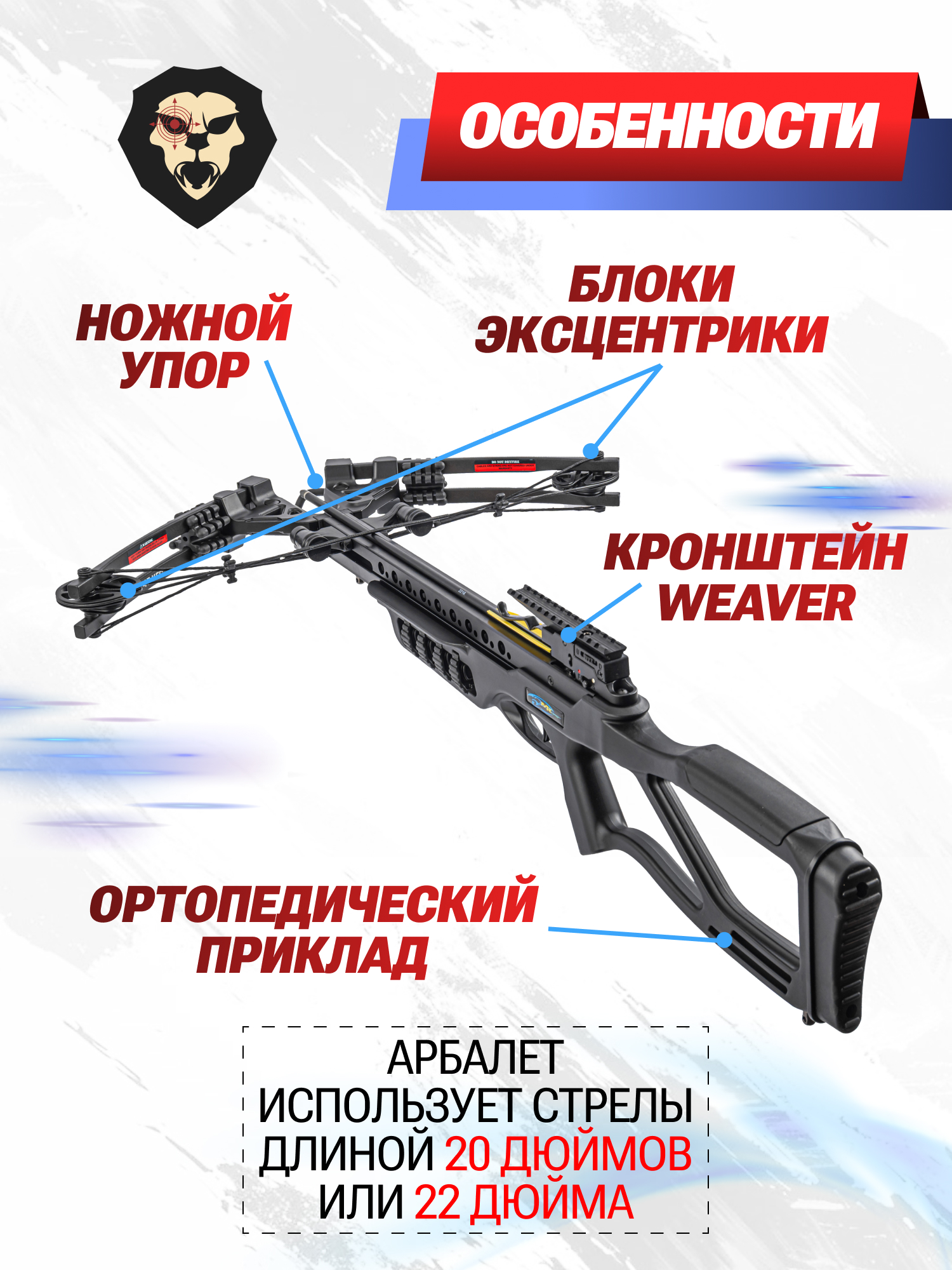 | Рекомендованная длина стрел | 20, 22 Дюйма |