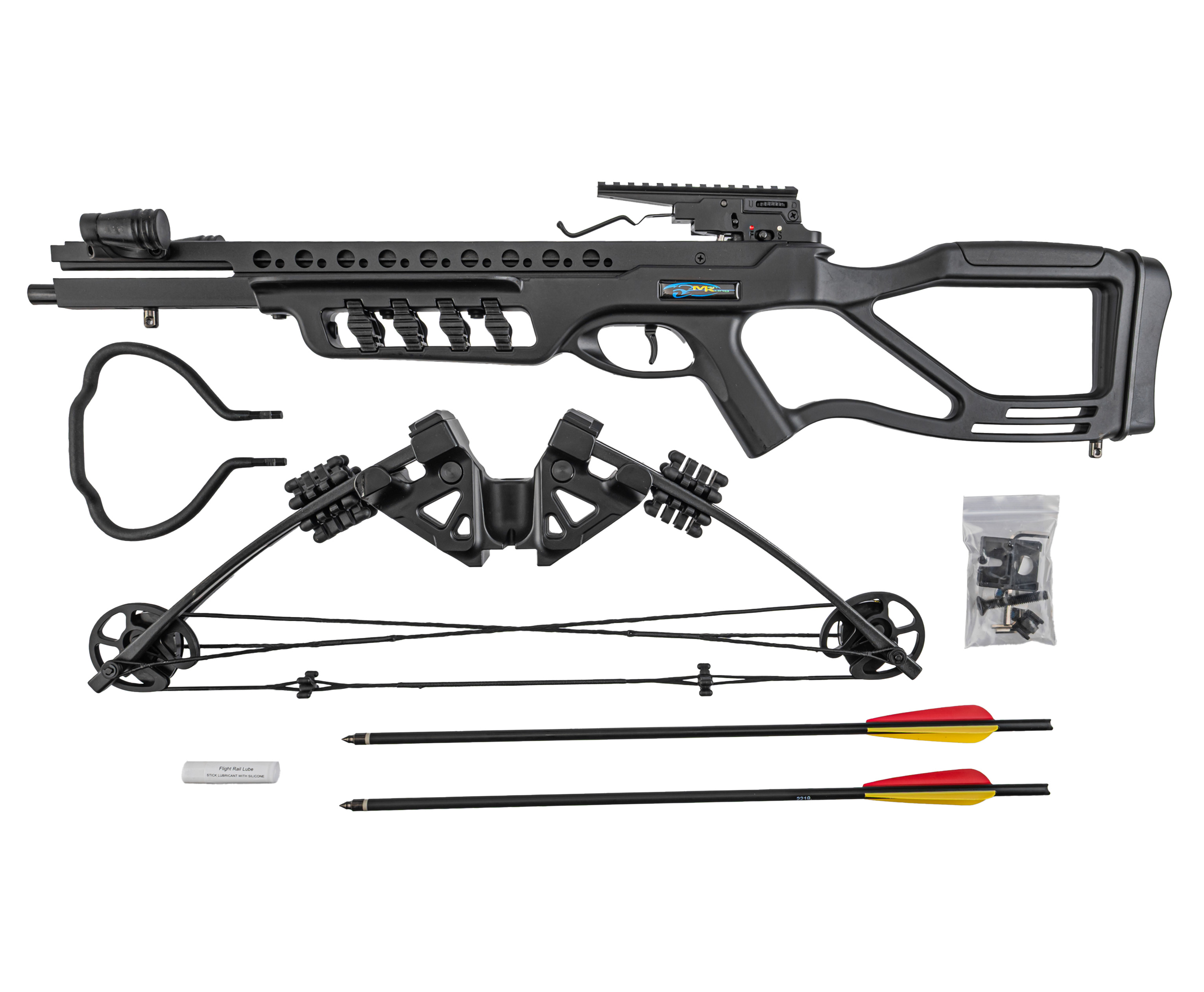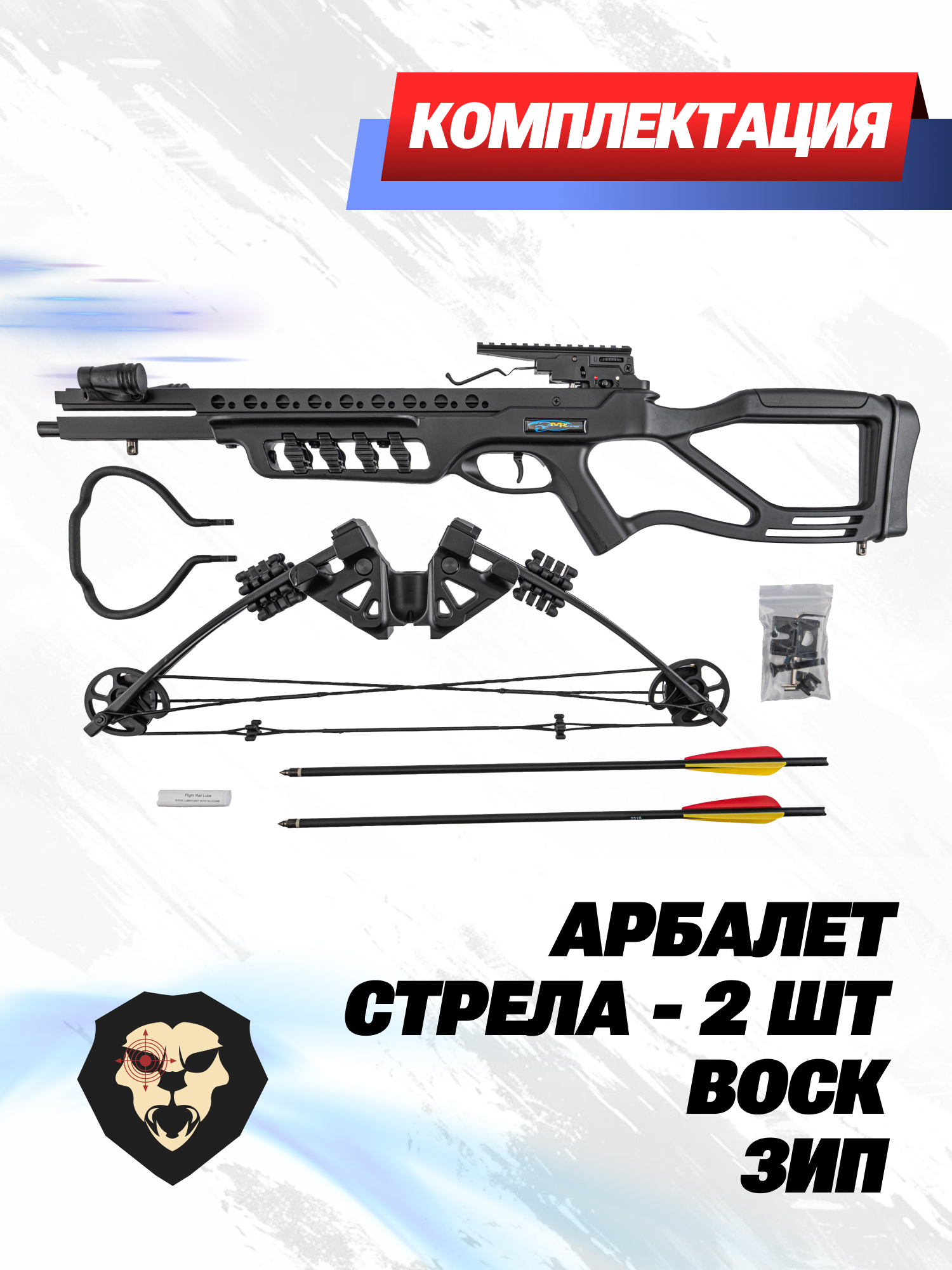 | Комплектация | Арбалет, стрела - 2 шт, ножной упор, воск для тетивы, ЗИП, упаковка |