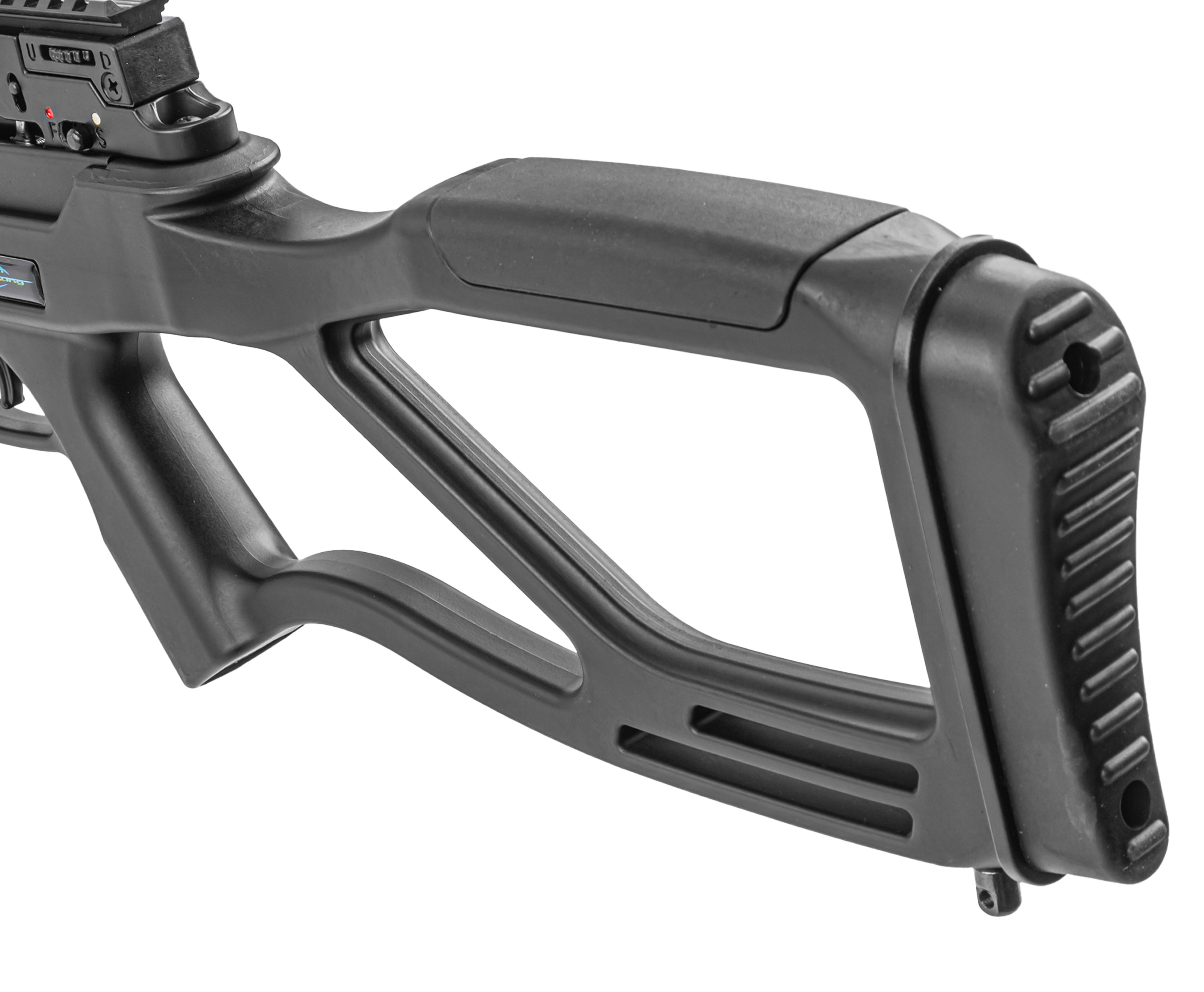 Арбалет выделяется мягким спуском - с учетом наличия стабилизаторов и дополнительных виброгасителей модель позволяет добиться точного и почти бесшумного выстрела. Раскрыть потенциал метательного оружия поможет оптика. Для ее монтажа на ствольной коробке присутствует кронштейн с интерфейсом Weaver.