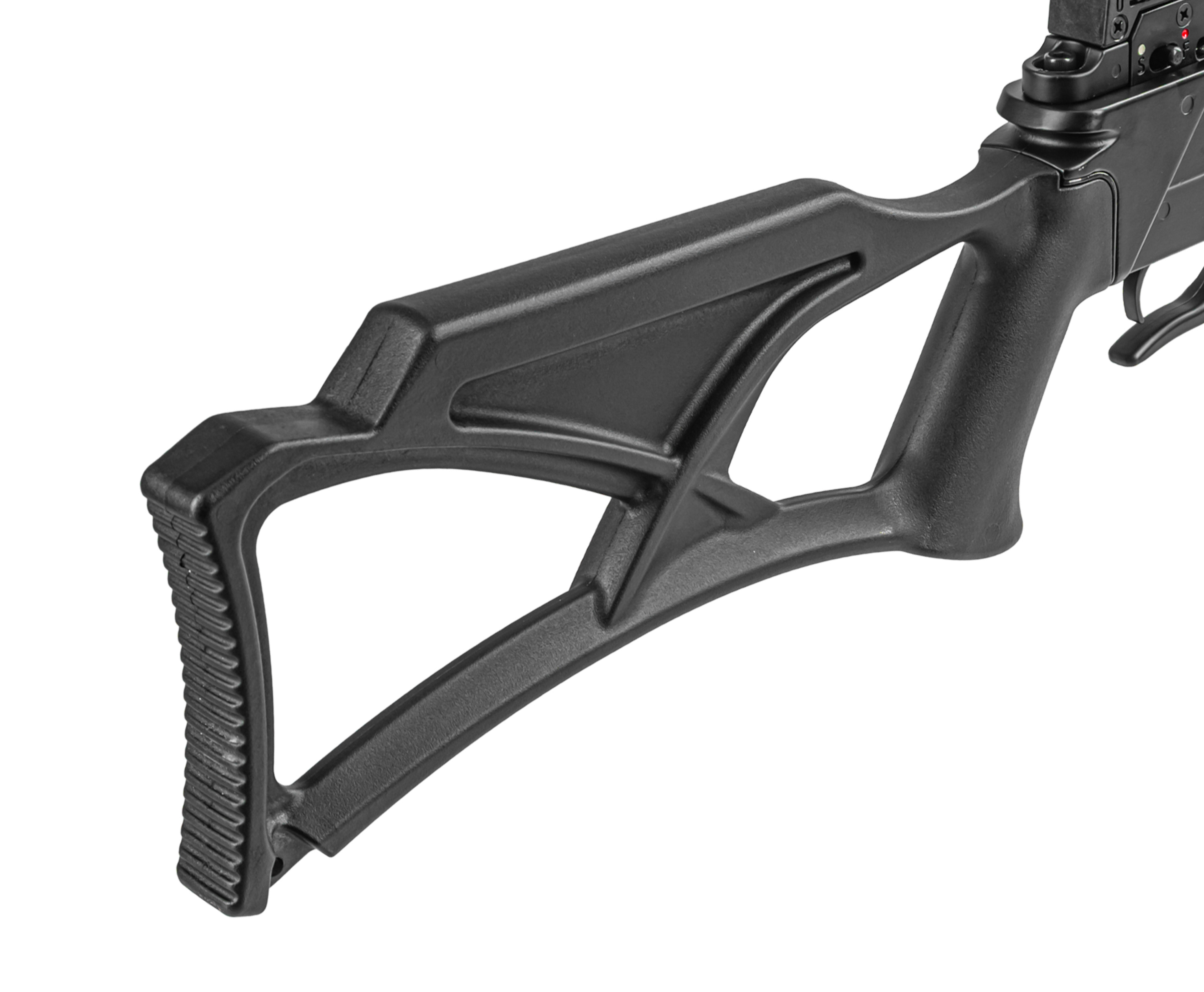 При создании изделия инженеры задействовали современные материалы - алюминий и ударостойкий полимер. Такая комбинация обеспечила оптимальное соотношение прочности и массы конструкции. Заявленный вес арбалета не превышает 2.4 кг, что положительным образом сказывается на комфорте обращения с ним.