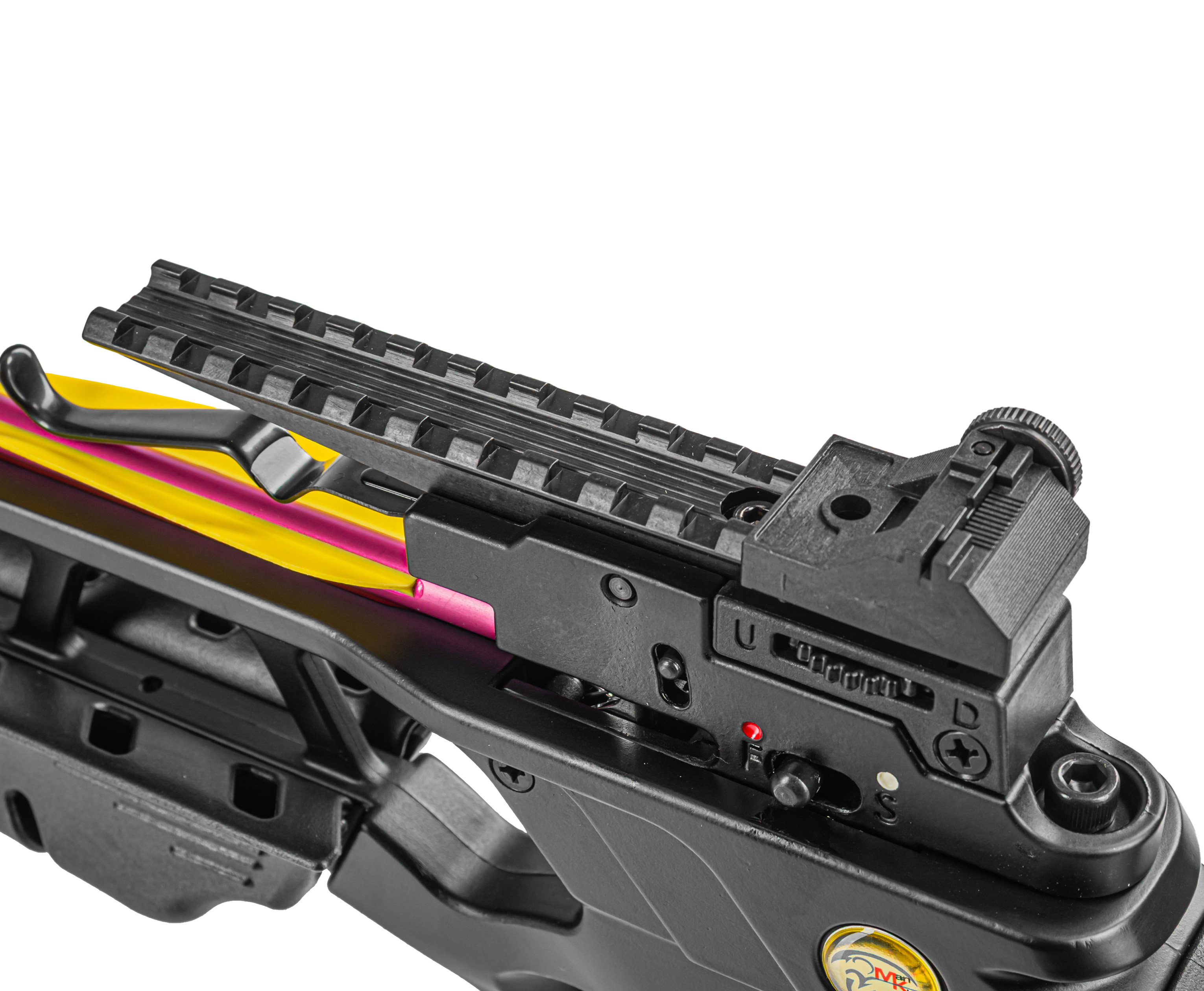 Размах дуг от оси до оси равен 660 мм, тогда как рабочий ход тетивы составляет 267 миллиметров. Для передачи энергии с плеч на метаемый боеприпас используется износостойкий трос из данейма. По заявлению производителя скорость вылета снаряда в теории достигает 79 метров в секунду.