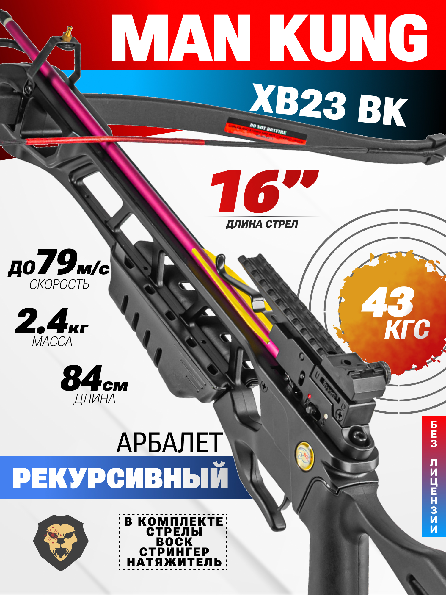 Артикул производителя 00190373 Арбалет рекурсивный Man Kung XB23BK (комплект, черный, 2 стрелы, воск, стрингер, натяжитель) по низкой цене 18590 руб. Модель со штрихкодом производителя Вы можете оплатить наложенным платежем с доставкой или в отделении транспортной компании (ПЭК, СДЭК, Boxberry). Ваш заказ со штрихкодом 2000000182285 забрать на почте с оплатой при получении в любой части Российской Федерации.