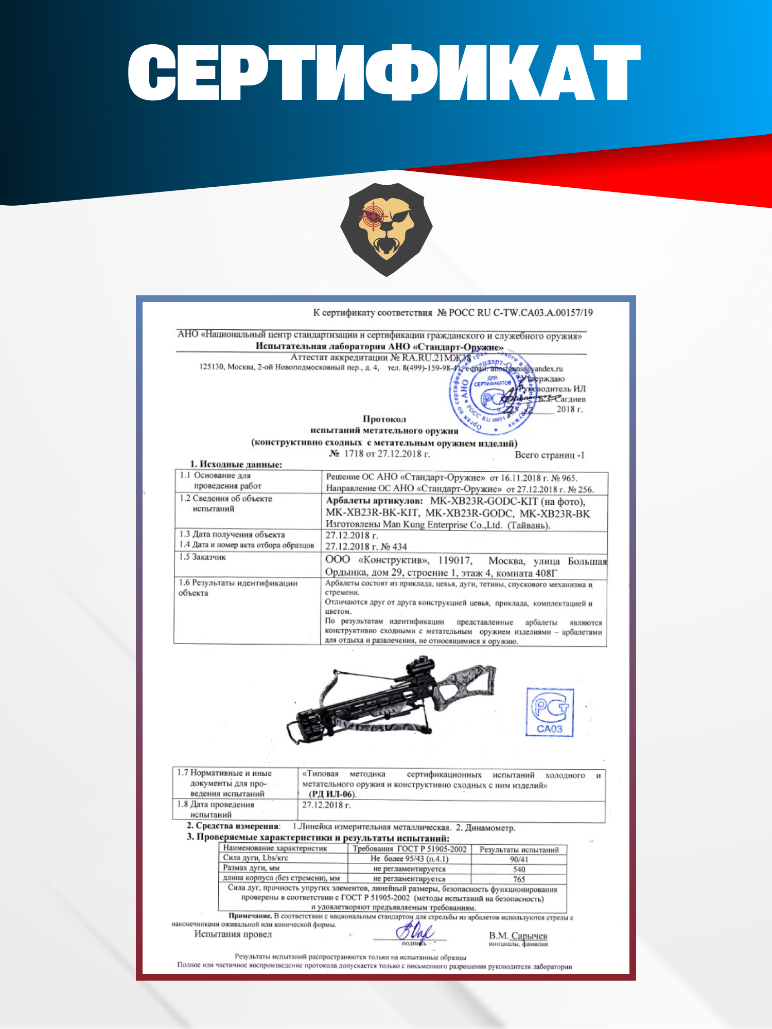 При этом показатель усилия натяжения штатных плеч, поставляемых в комплекте в версии для российского рынка, находится в рамках разрешенного диапазона до 43 кгс. Таким образом, чтобы приобрести арбалет рекурсивный Man Kung XB23, не требуется специальное разрешение. Законно завладеть экземпляром смогут все желающие старше восемнадцати лет.