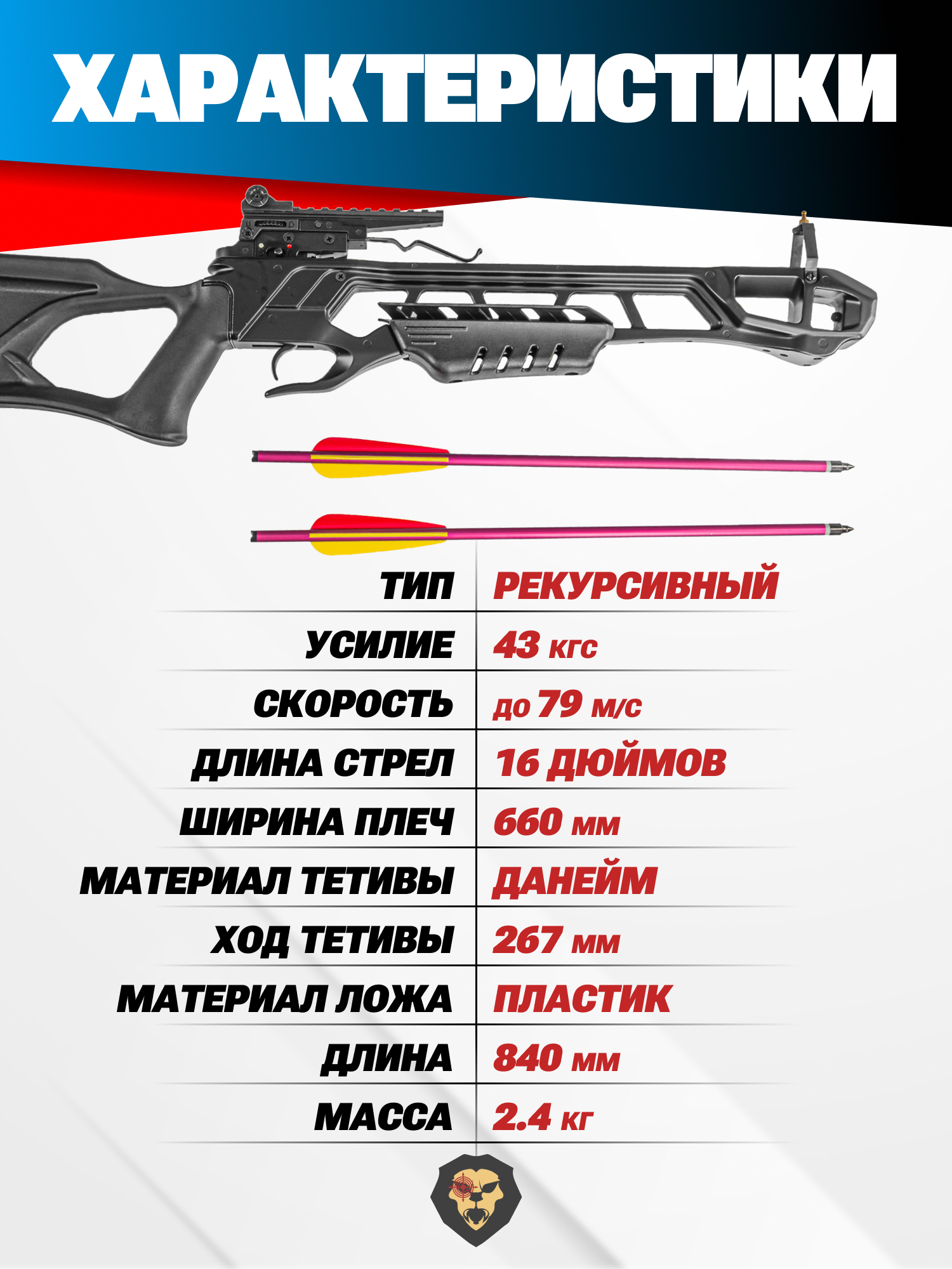 | Рекомендованная длина стрел | 16 дюймов |