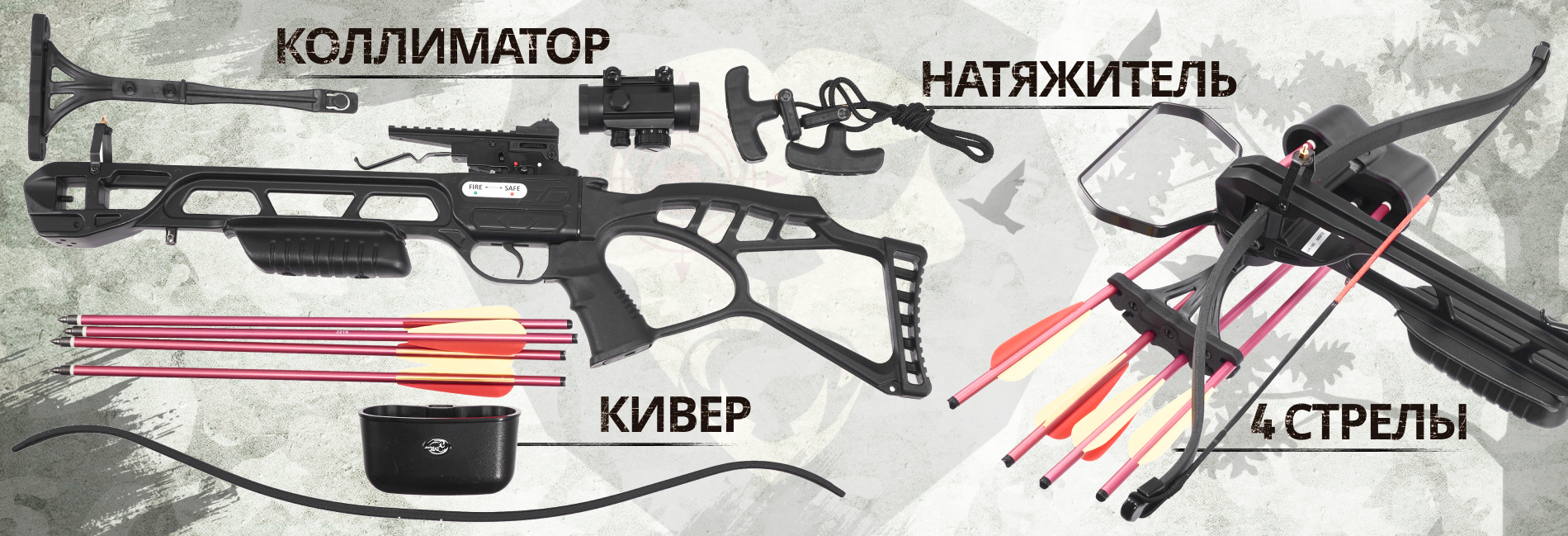 Удлиненная ствольная часть при этом открывает доступ к стрельбе 16-дюймовыми снарядами. Композитные плечи дают разогнать стрелы до 77 м/с, причем оба экземпляра «из коробки» имеют усилие в пределах 43 кгс и не нуждаются в получении специального разрешения на покупку. Вместо «Ласточки» предусмотрен кронштейн Weaver 22 мм, что расширяет спектр совместимых прицелов.