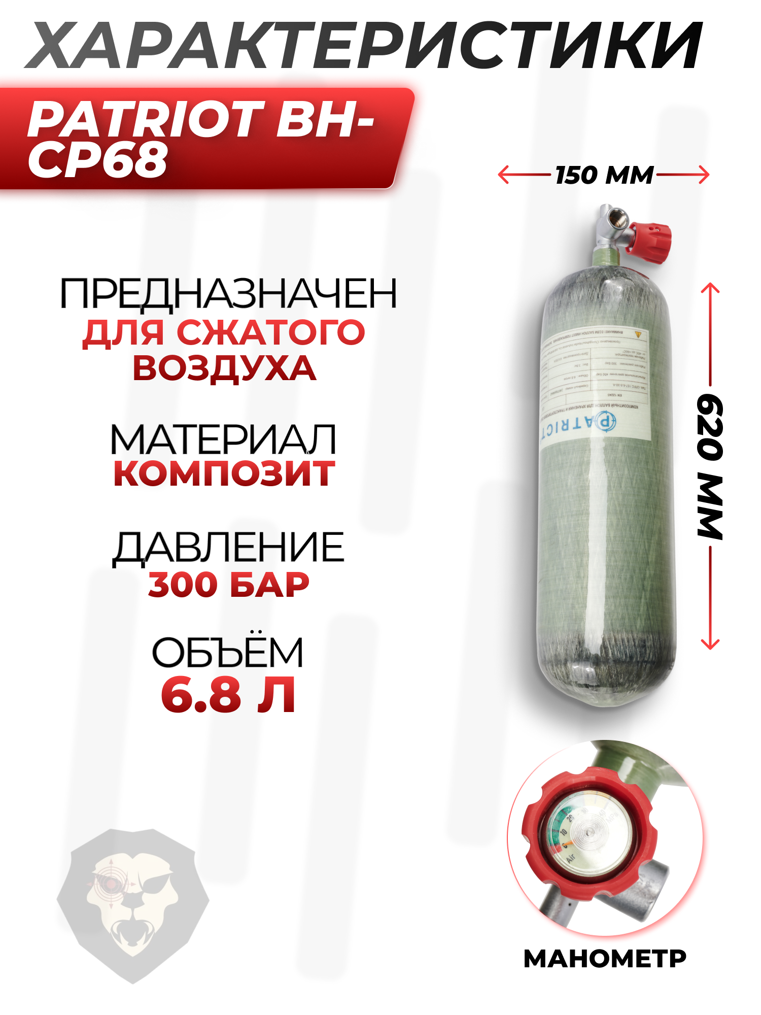 Баллон высокого давления Patriot BH-CP68 (6.8 литра, с манометром) купить в интернет-магазине Popadiv10.
