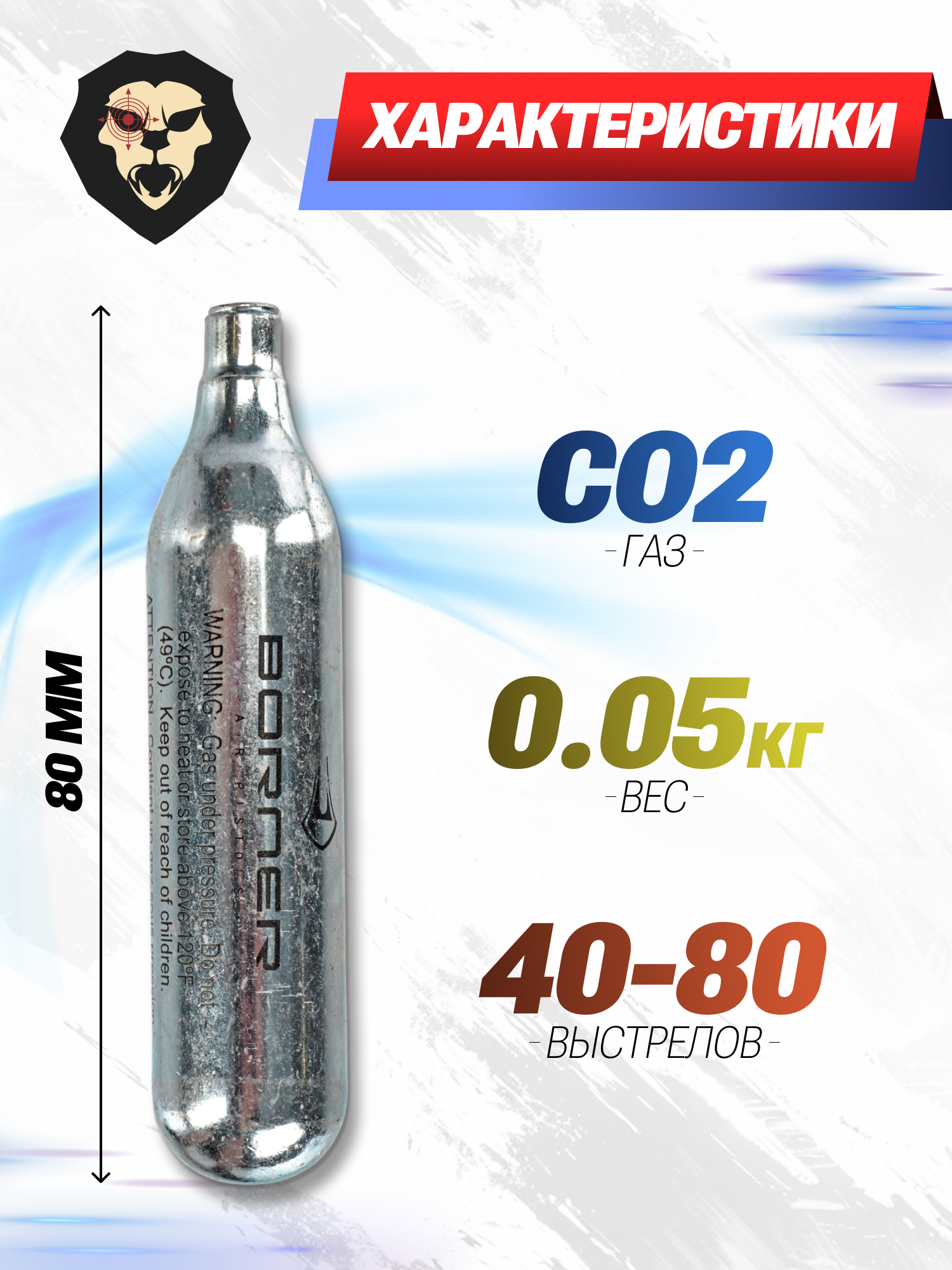 Компания Borner известна многим стрелкам благодаря выпускаемым моделям пневматического оружия, отличающимся высоким качеством и надежностью. Однако товарный ряд фирмы на этом не ограничивается - под собственным брендом изготовитель предлагает широкий ассортимент аксессуаров и расходников. К числу последних стоит отнести баллончики с газом, необходимые для работы CO2 пистолетов и винтовок.