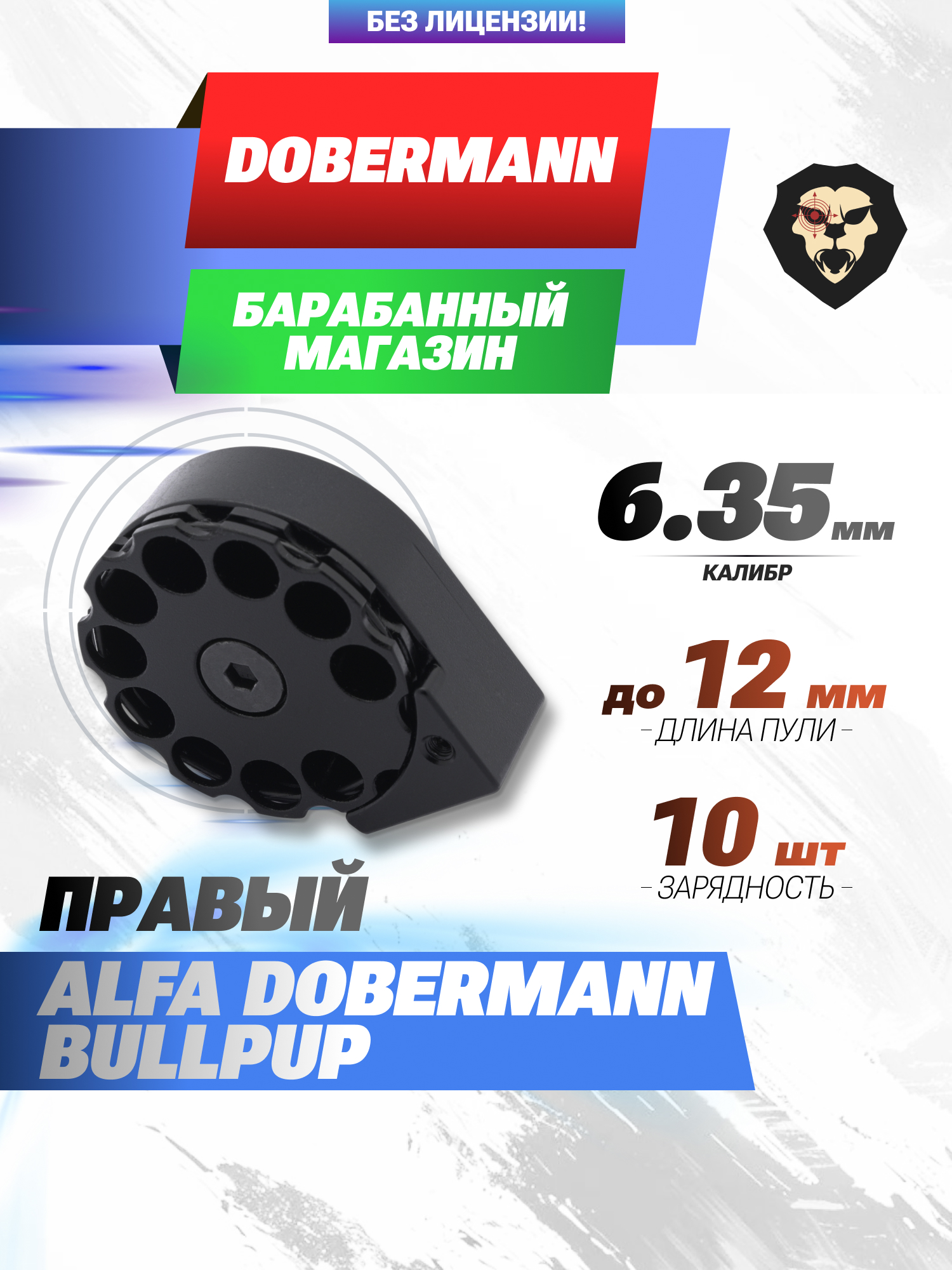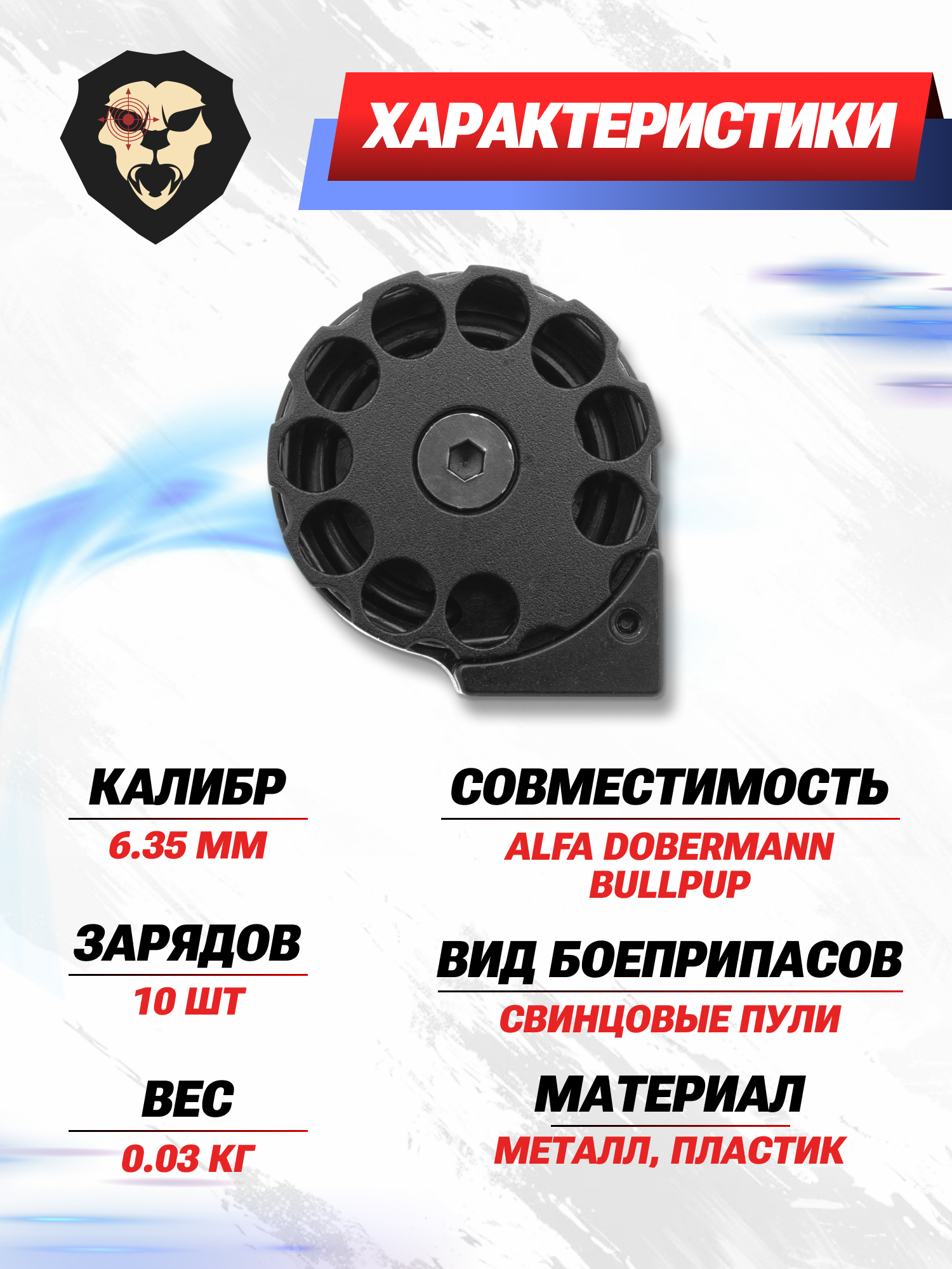 Барабанный магазин Dobermann 6.35 мм (10 мест, правый, автоматический, 15 мм) купить в интернет-магазине Popadiv10.