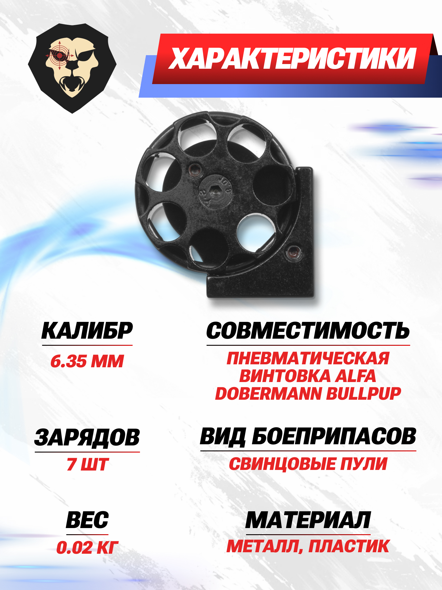 Барабанный магазин Dobermann 6.35 мм (7 мест, правый, ручной, 15 мм) купить в интернет-магазине Popadiv10.