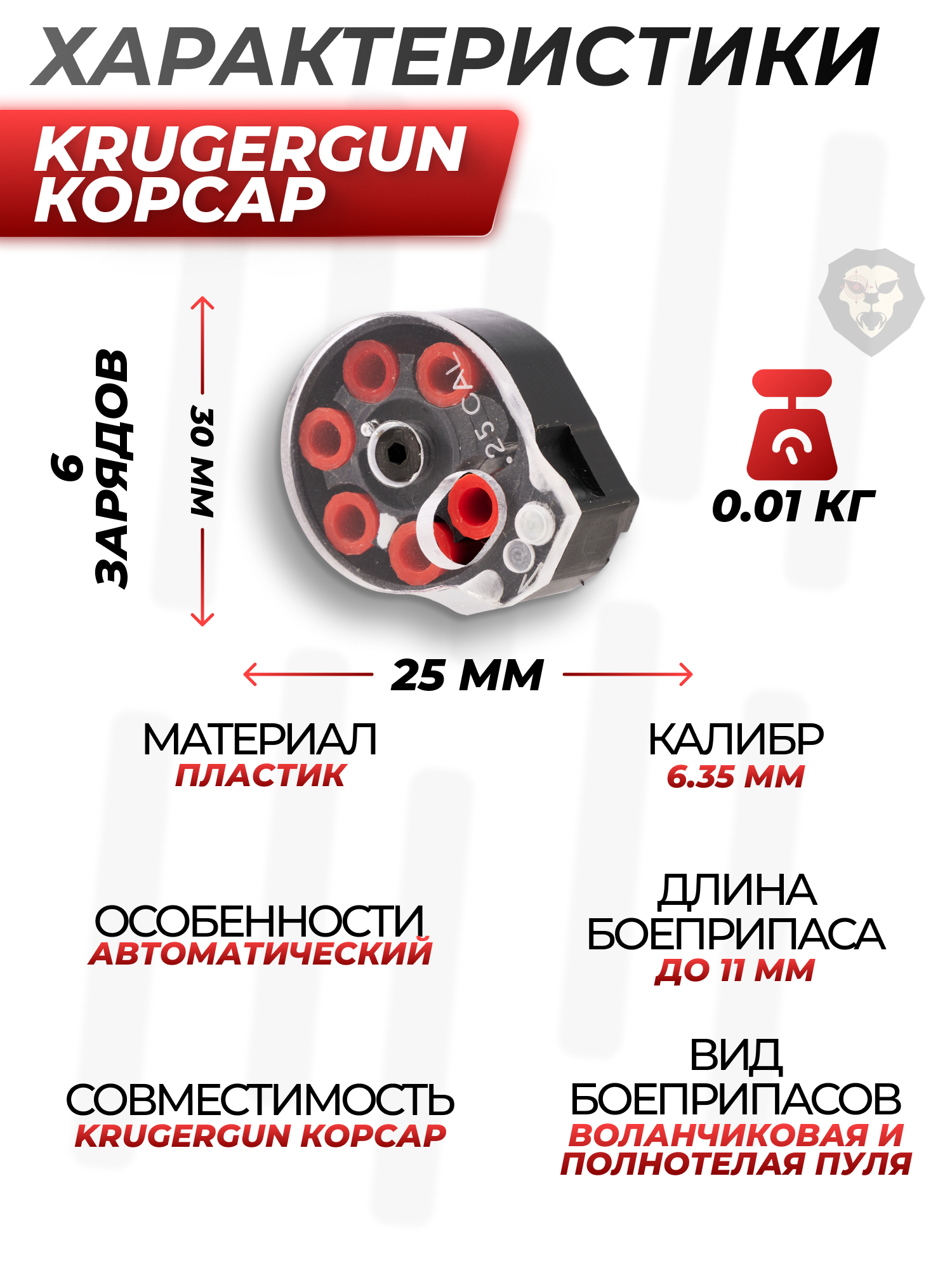 Барабанный магазин KrugerGun 6.35 мм Корсар (6 пуль) купить в интернет-магазине Popadiv10.