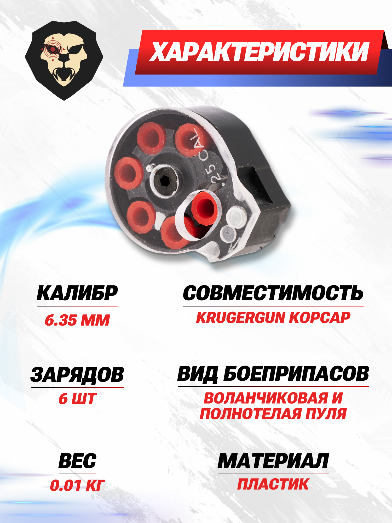 Барабанный магазин KrugerGun 6.35 мм Корсар (6 пуль) купить в интернет-магазине Popadiv10.