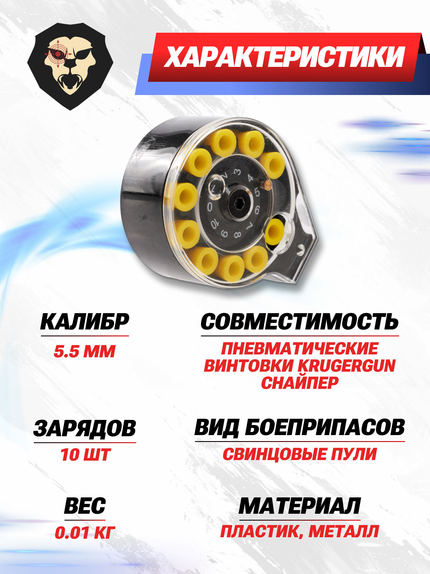 Барабанный магазин KrugerGun Мародер Снайпер 17.5 мм (5.5 мм, 10 пуль, с проточкой) купить в интернет-магазине Popadiv10.