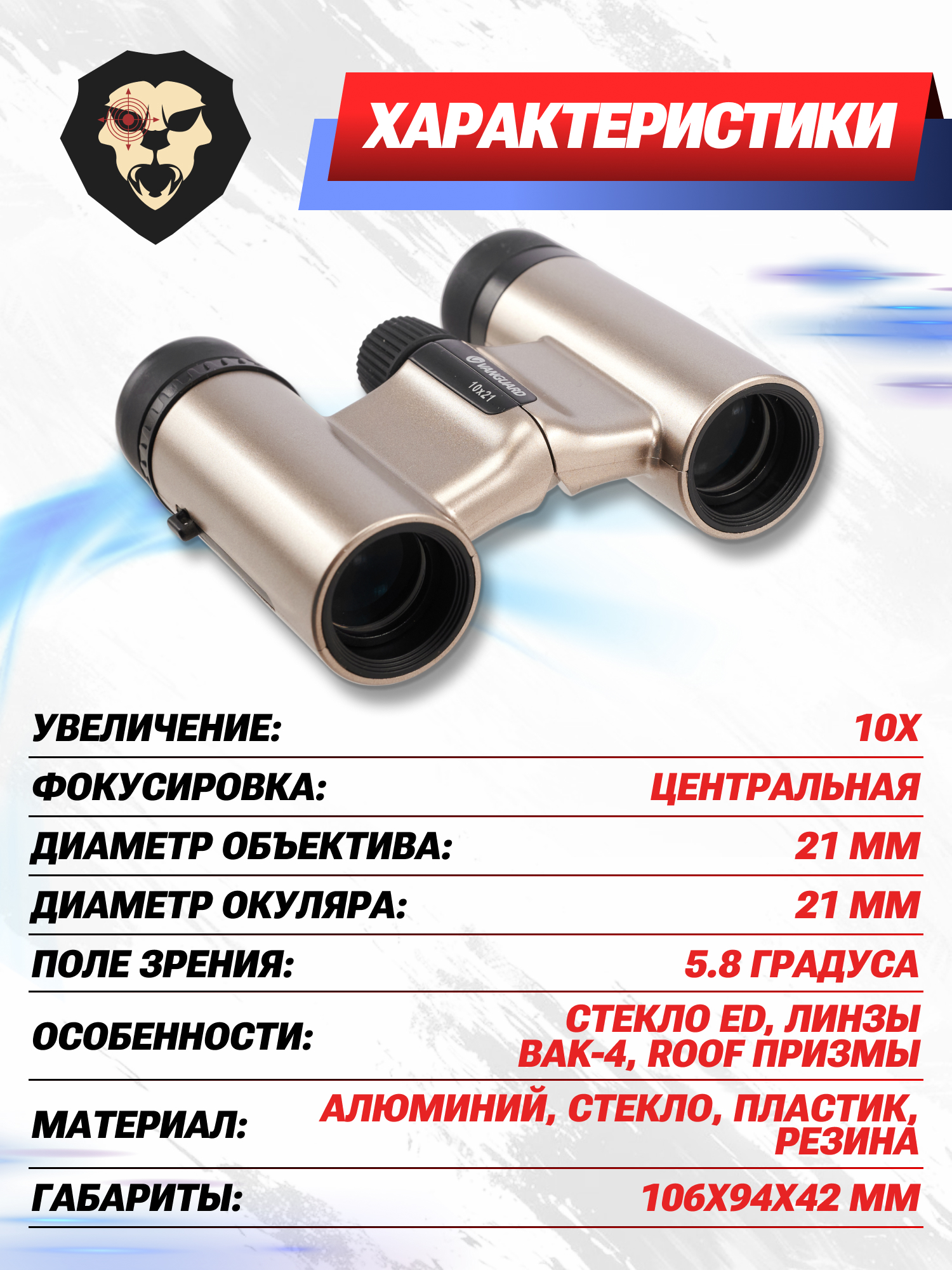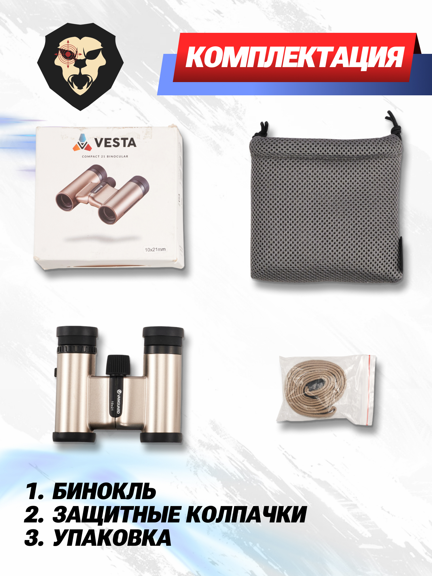 Информация о товаре "Бинокль Vanguard Vesta 10x21 Cham (шампань)" носит ознакомительный характер, и не является публичной офертой, определяемой положениями Статьи 437 Гражданского кодекса Российской Федерации, характеристики, внешний вид, цвет и комплектация могут быть изменены производителем без уведомления.