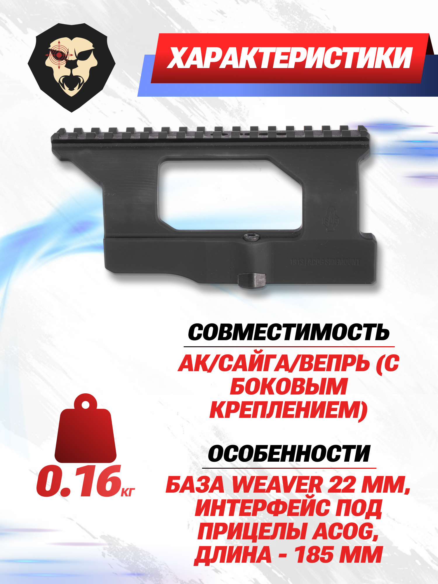 | Особенности | База Weaver 22 мм, интерфейс под прицелы ACOG, длина - 185 мм |