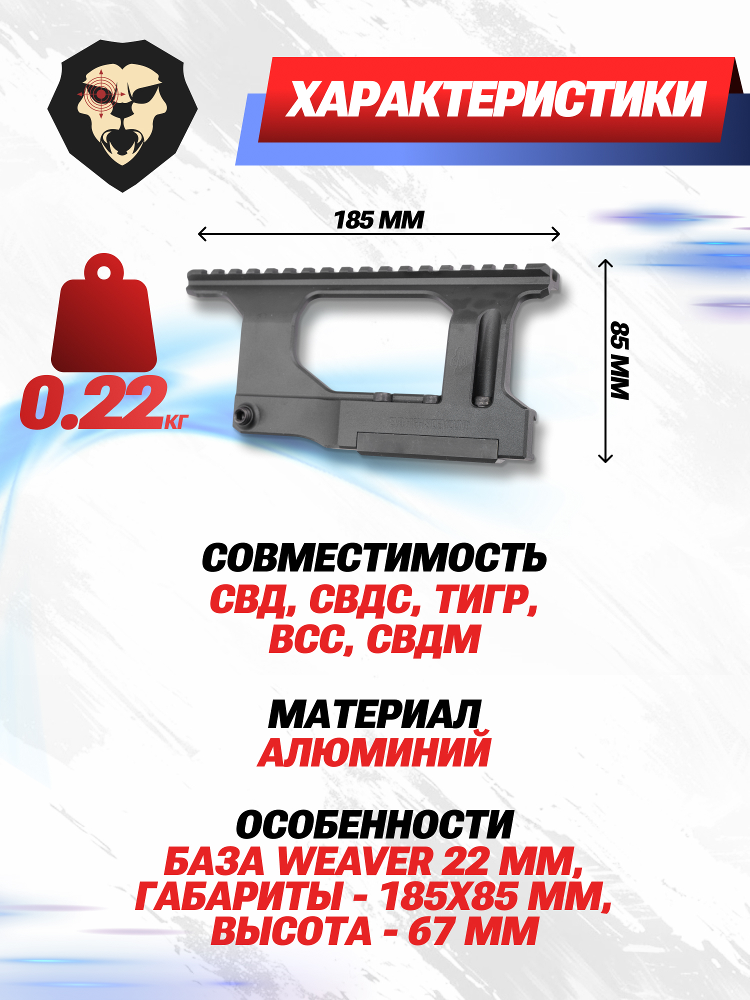 | Особенности | База Weaver 22 мм, габариты - 185х85 мм, высота - 67 мм |