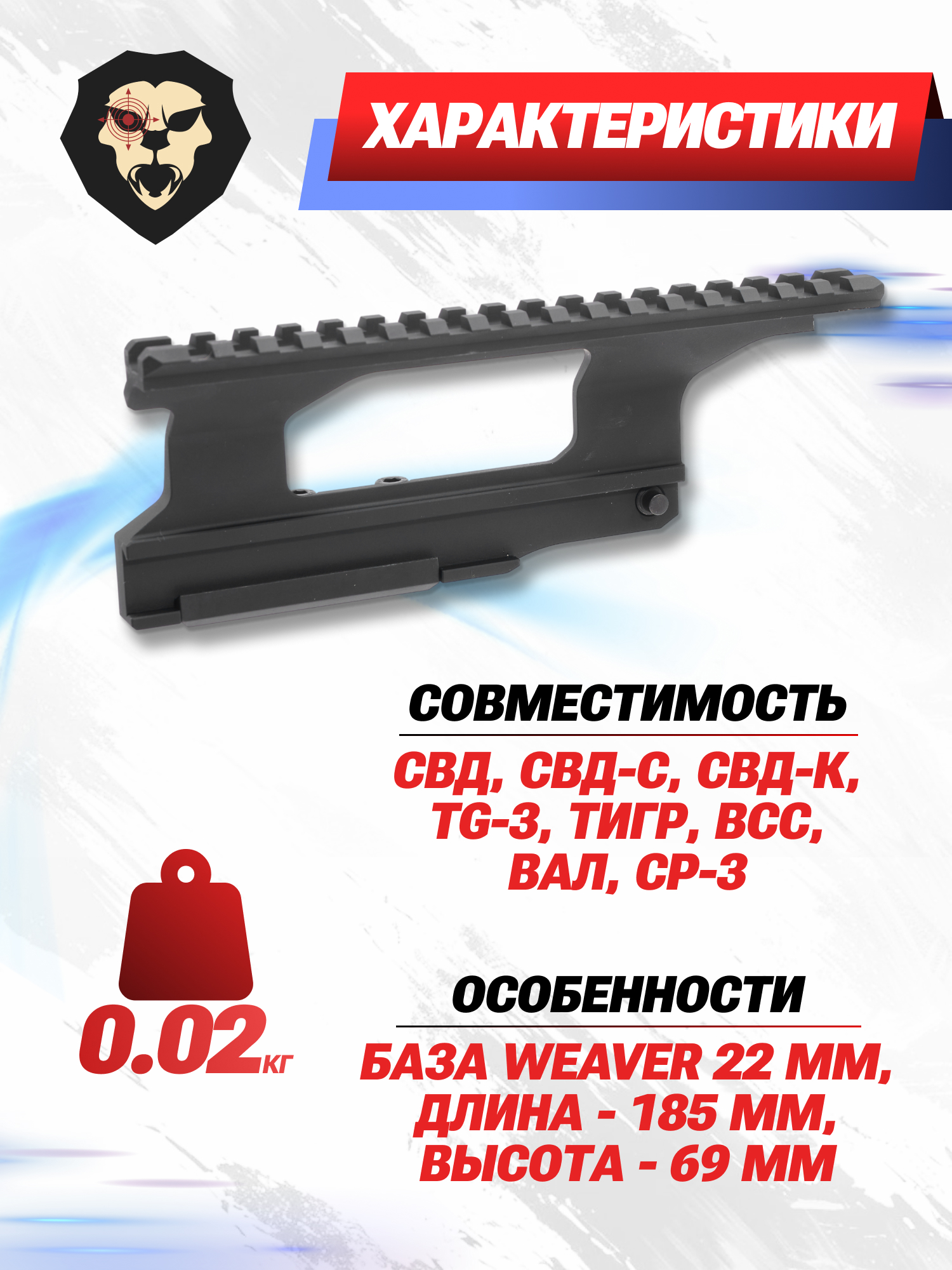 | Особенности | База Weaver 22 мм, длина - 185 мм, высота - 69 мм |