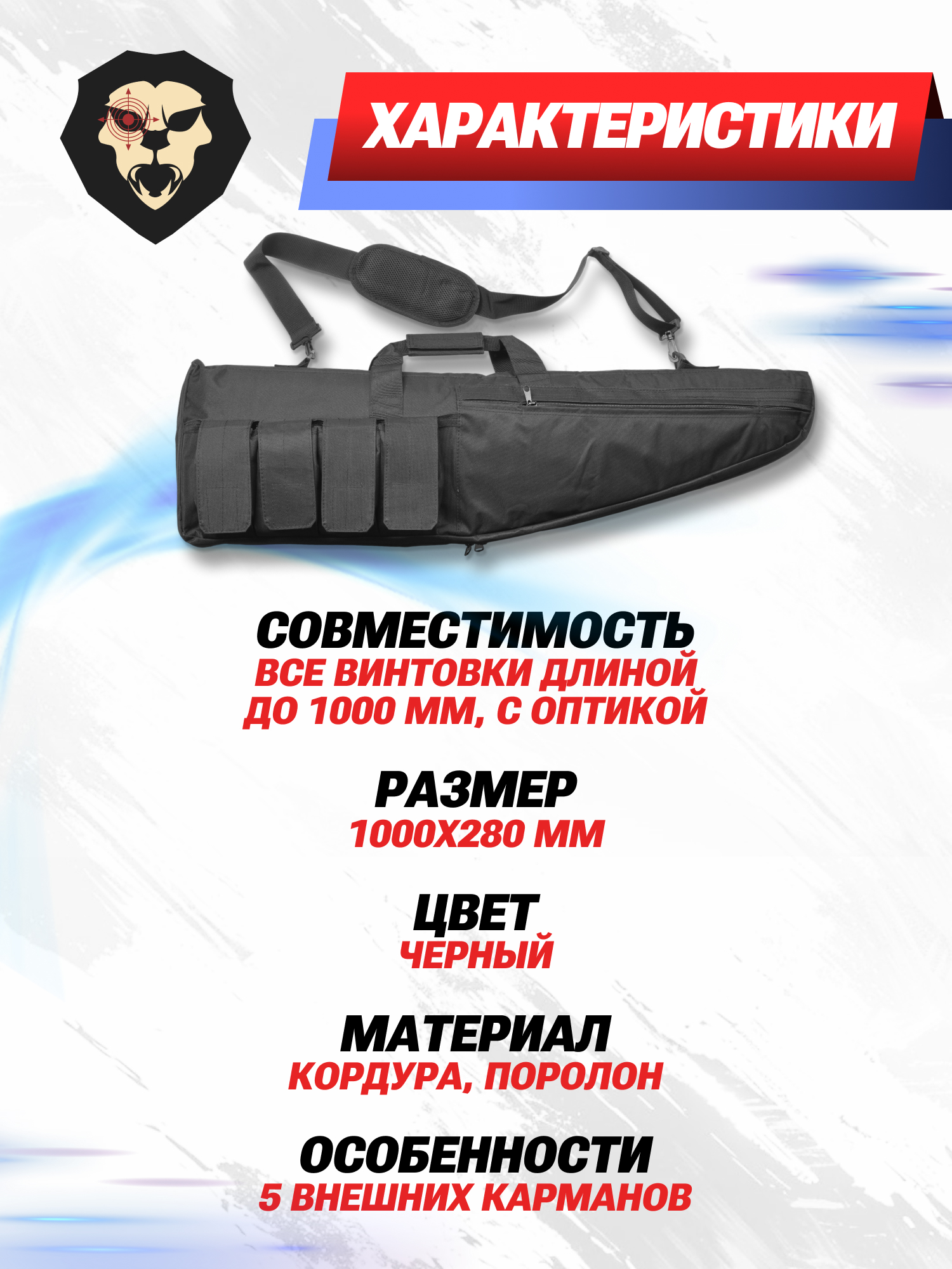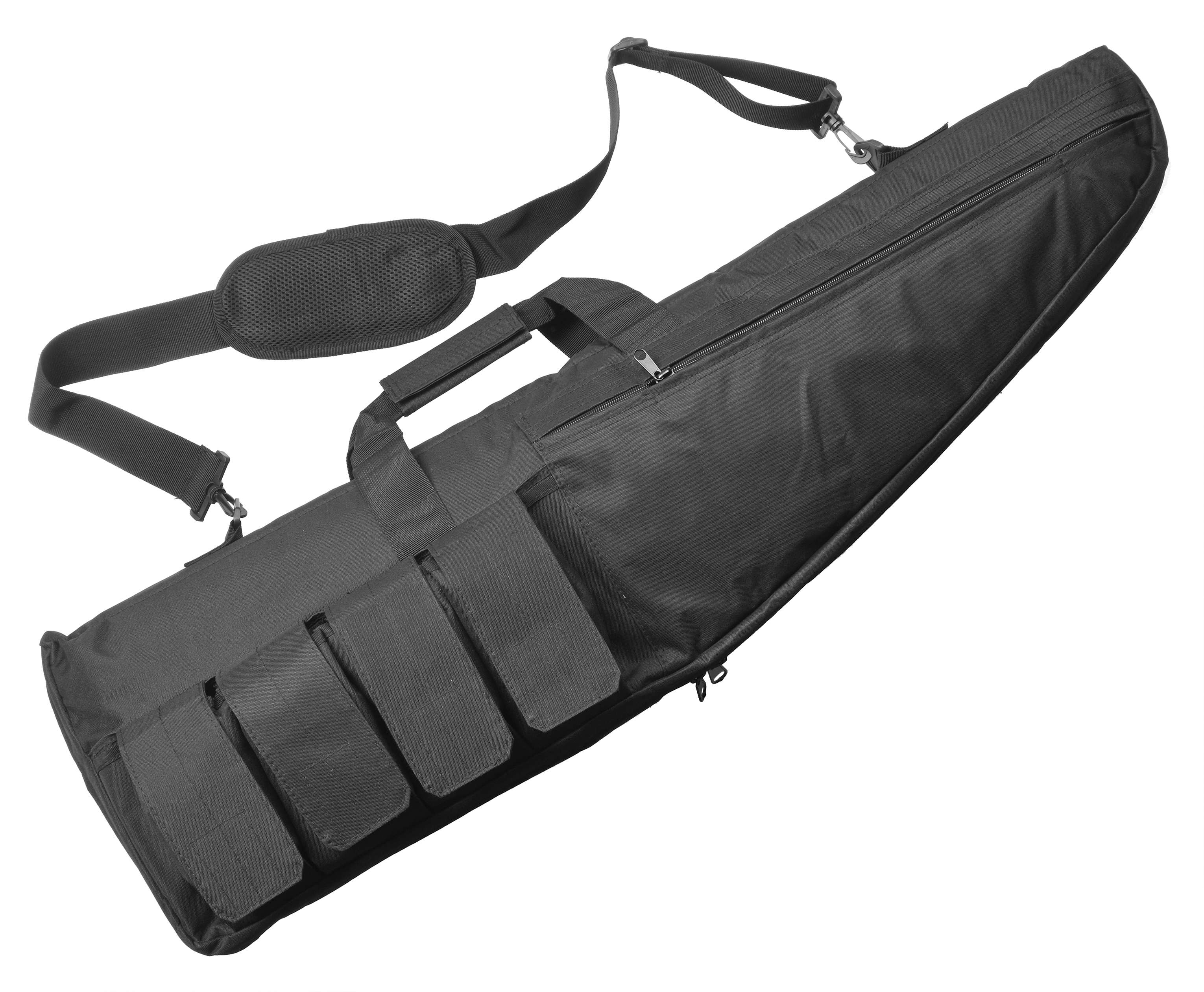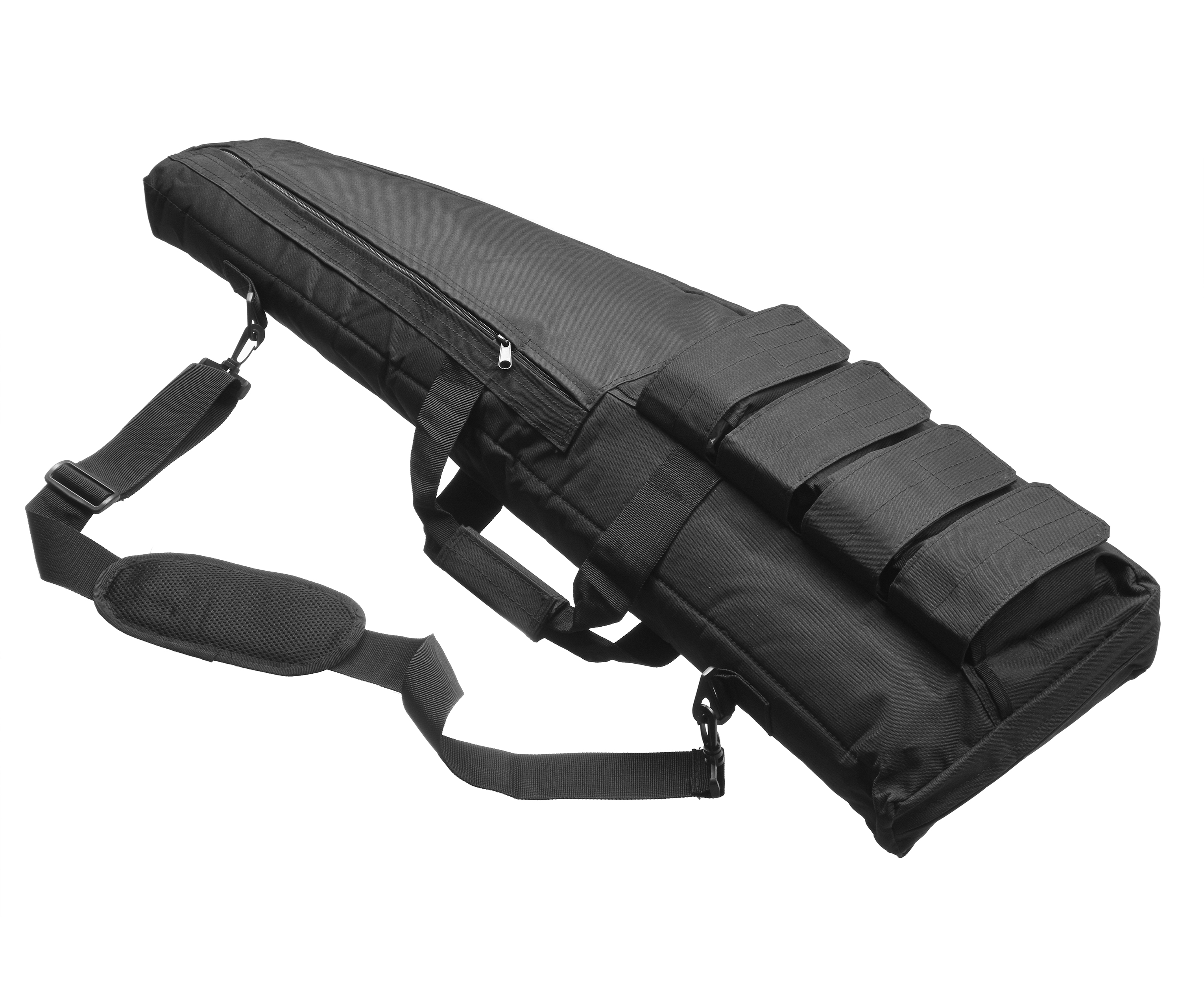 Из дополнительных особенностей стоит отметить наличие 5-и внешних карманов, четыре из которых выполнены в формате подсумков под магазины и закрываются на липучку велкро. Еще один отсек на молнии, также расположенный на передней стенке, подойдет для различной мелочевки и ЗИП комплекта. Кейс подразумевает переноску при помощи двух ручек или посредством комплектного регулируемого плечевого ремня, подсоединяемого карабинами к пластиковой фурнитуре футляра.