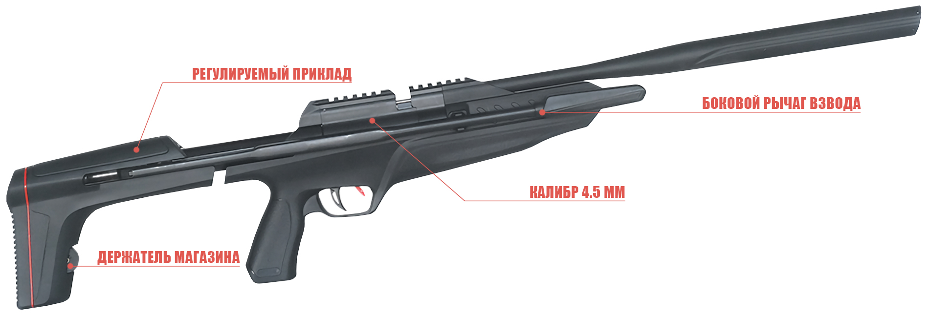 Ассортимент фирмы также включает модель с боковым рычагом взвода - источником вдохновения для SL900S послужила небезызвестная спортивная ижевская винтовка для юношеского биатлона. Изготовитель доработал функционал платформы и осовременил внешний вид. Изделие примечательно наличием автоматизированного боепитания за счет 9-местного барабан-клипа, имеет регулируемый приклад и современный посадочный интерфейс Weaver.
