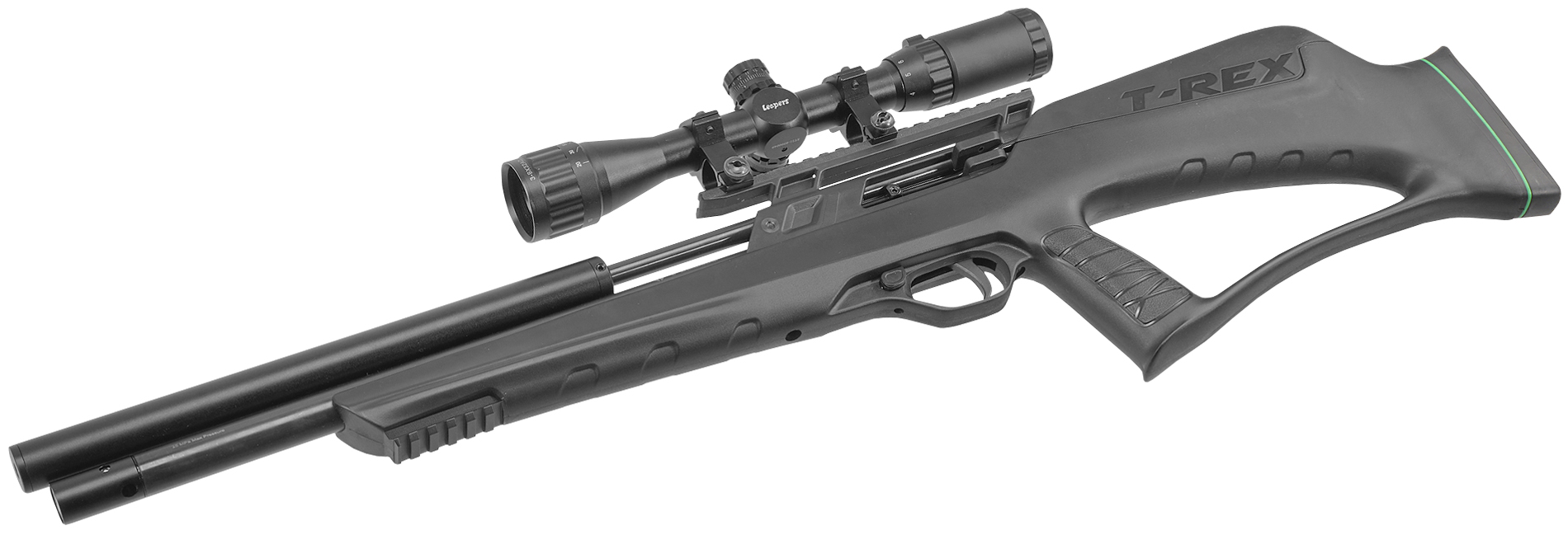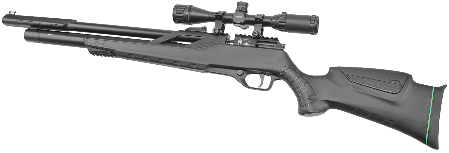 Товарный ряд не ограничивается экземплярами, оформленными в дереве. Любителям оружия с футуристичным внешним видом придется по вкусу линейка ZR Arms T-Rex. В винтовках задействуется фурнитура из современного полимера, благодаря чему карабин весит в пределах 3.15 кг, а «булка» всего 2.3 кг - такая масса дает комфортно работать с оружием стрелкам различной комплекции, тогда как пластик сделал пневматику дешевле в производстве.