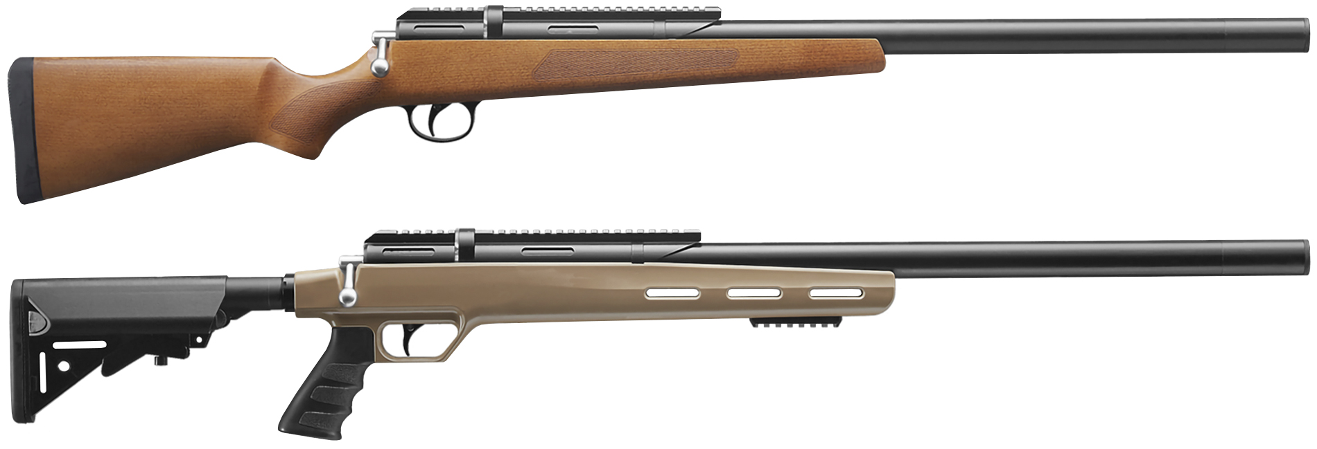 Серия ПСП включает богатый выбор винтовок в классической компоновке. Карабины ZR Arms PCP по типу M22 и M25W имеют привычную многим конструкцию с продольно-скользящим затвором и магазинным боепитанием. Они доступны во всех ходовых калибрах от 4.5 мм до 6.35 мм и оснащаются нарезными бланками, что позволяет достичь хорошей кучности стрельбы воланчиковыми пулями.