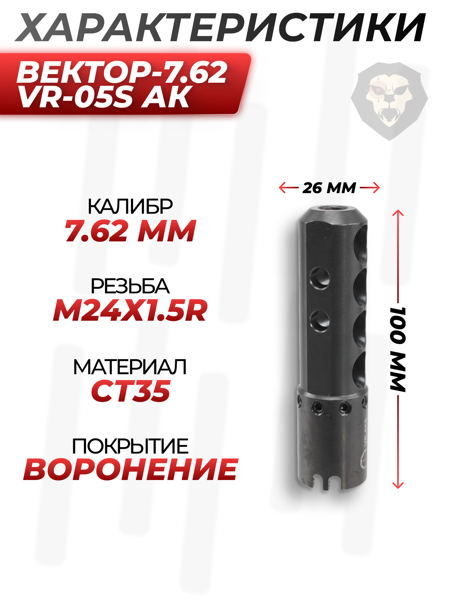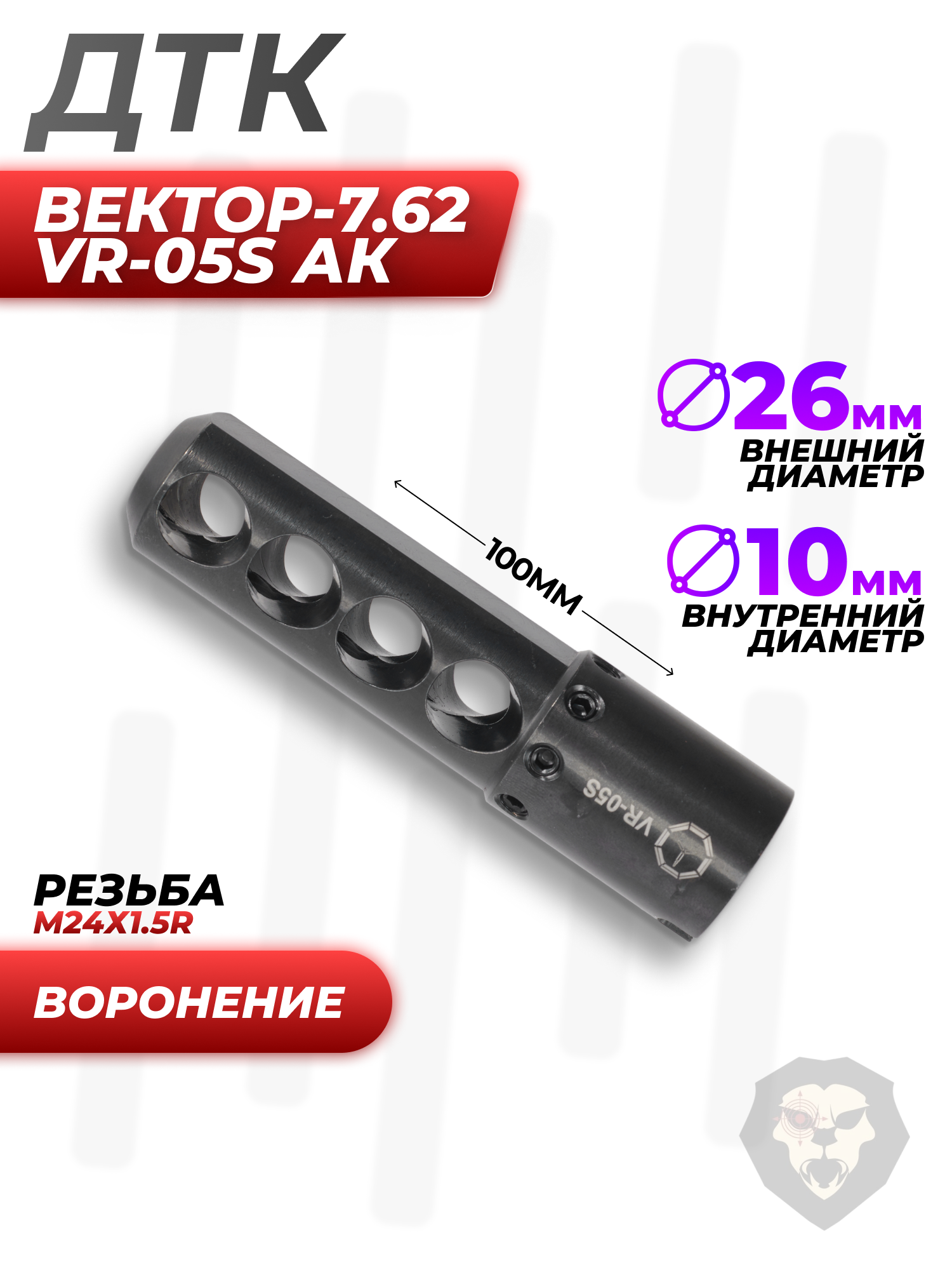 Информация о товаре "ДТК Вектор-7.62 VR-05S (для АК, М24х1.5, 7.62 мм)" носит ознакомительный характер, и не является публичной офертой, определяемой положениями Статьи 437 Гражданского кодекса Российской Федерации, характеристики, внешний вид, цвет и комплектация могут быть изменены производителем без уведомления.