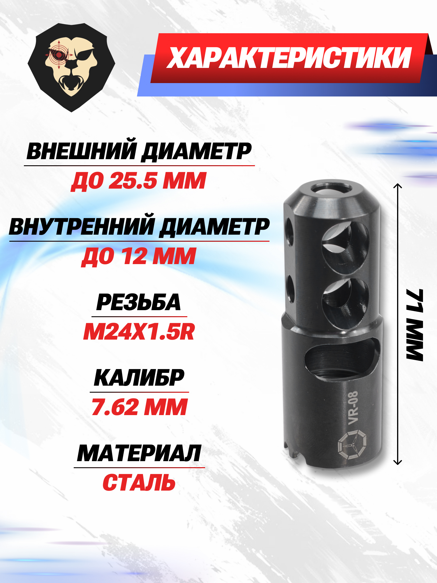 Информация о товаре "ДТК Вектор-7.62 VR-08 (для АК, М24х1.5, 7.62 мм)" носит ознакомительный характер, и не является публичной офертой, определяемой положениями Статьи 437 Гражданского кодекса Российской Федерации, характеристики, внешний вид, цвет и комплектация могут быть изменены производителем без уведомления.
