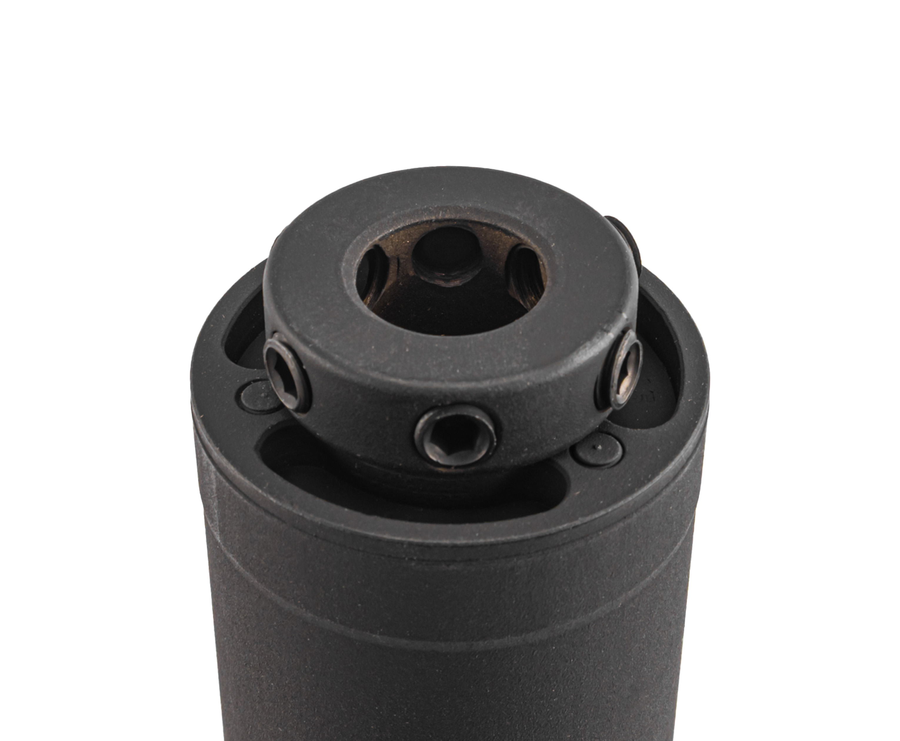 Последний накручивается на штатную резьбу «банки» M26x1.5, после чего сборная конструкция надвигается поверх бланка СВДС. Заблаговременно необходимо снять мушку с заводского пламегасителя ствола, которая будет мешать установке. Крепление представляет собой зажим с шестью винтами, которые затягиваются при помощи шестигранного ключа.