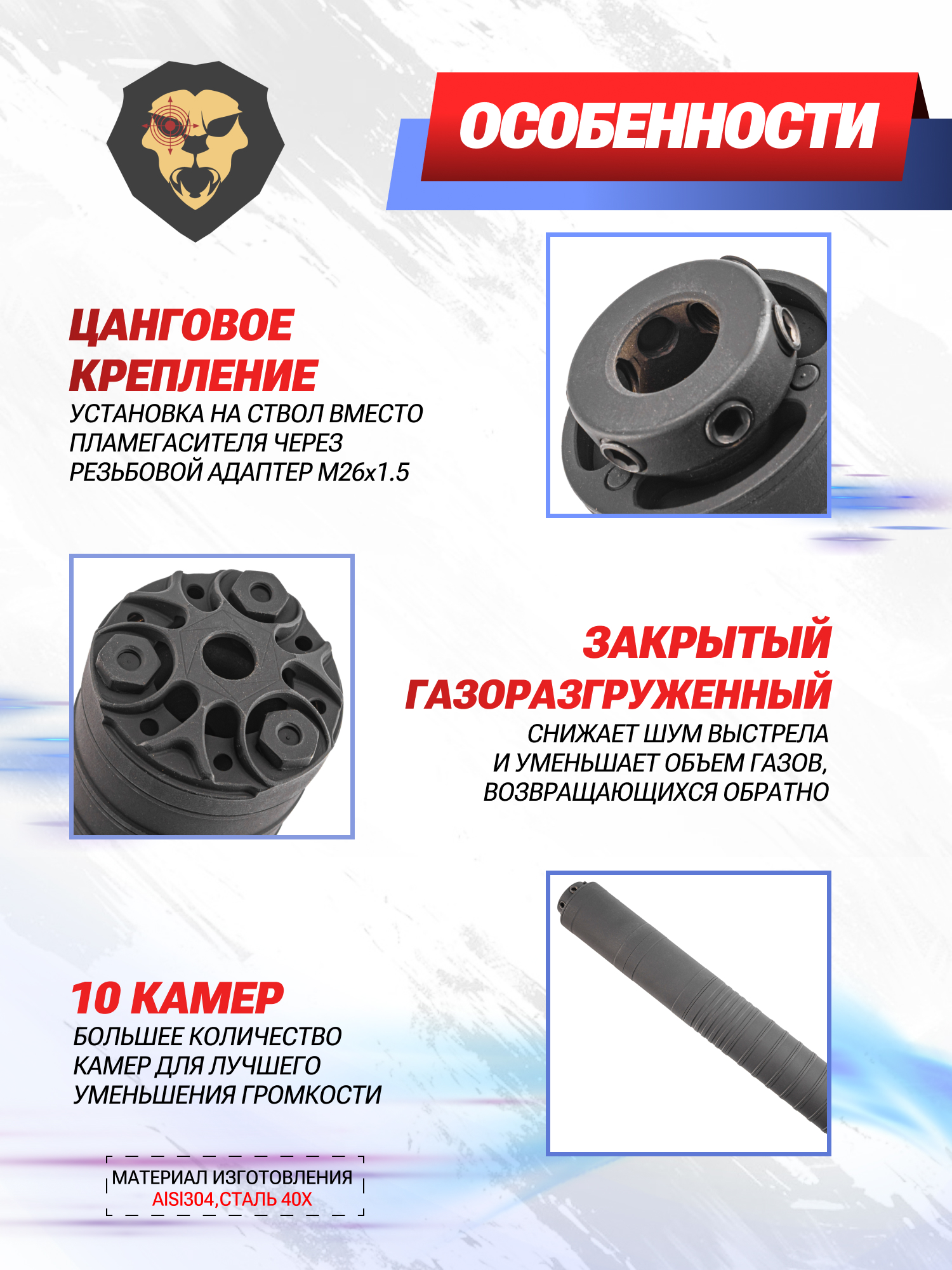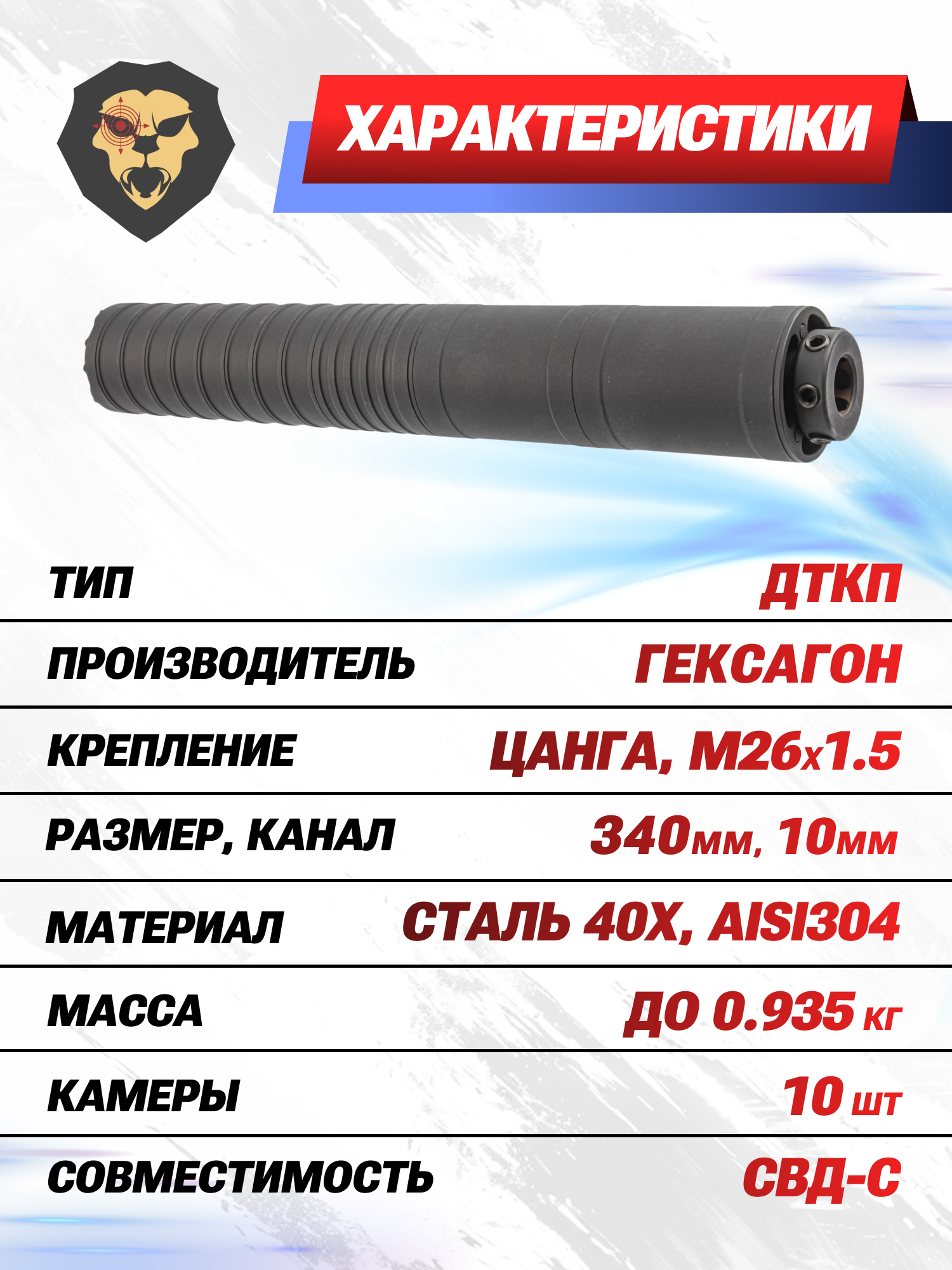 Информация о товаре "ДТКП Гексагон Поток для СВД-С (7.62х54R, M26x1.5, 340 мм, комплект, 10 камер, сталь)" носит ознакомительный характер, и не является публичной офертой, определяемой положениями Статьи 437 Гражданского кодекса Российской Федерации, характеристики, внешний вид, цвет и комплектация могут быть изменены производителем без уведомления.